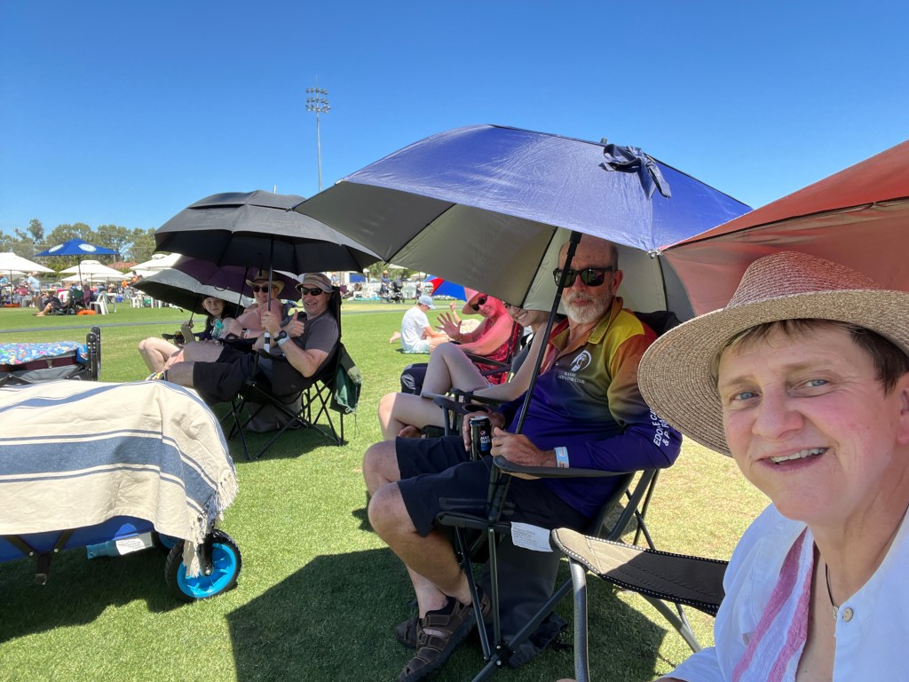 We’ve managed to create our own shade using our umbrellas and this has taken the pressure off being lined up early.