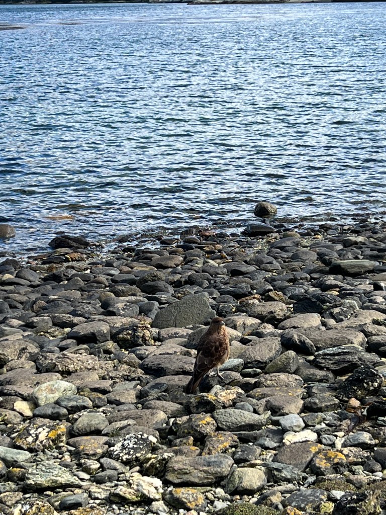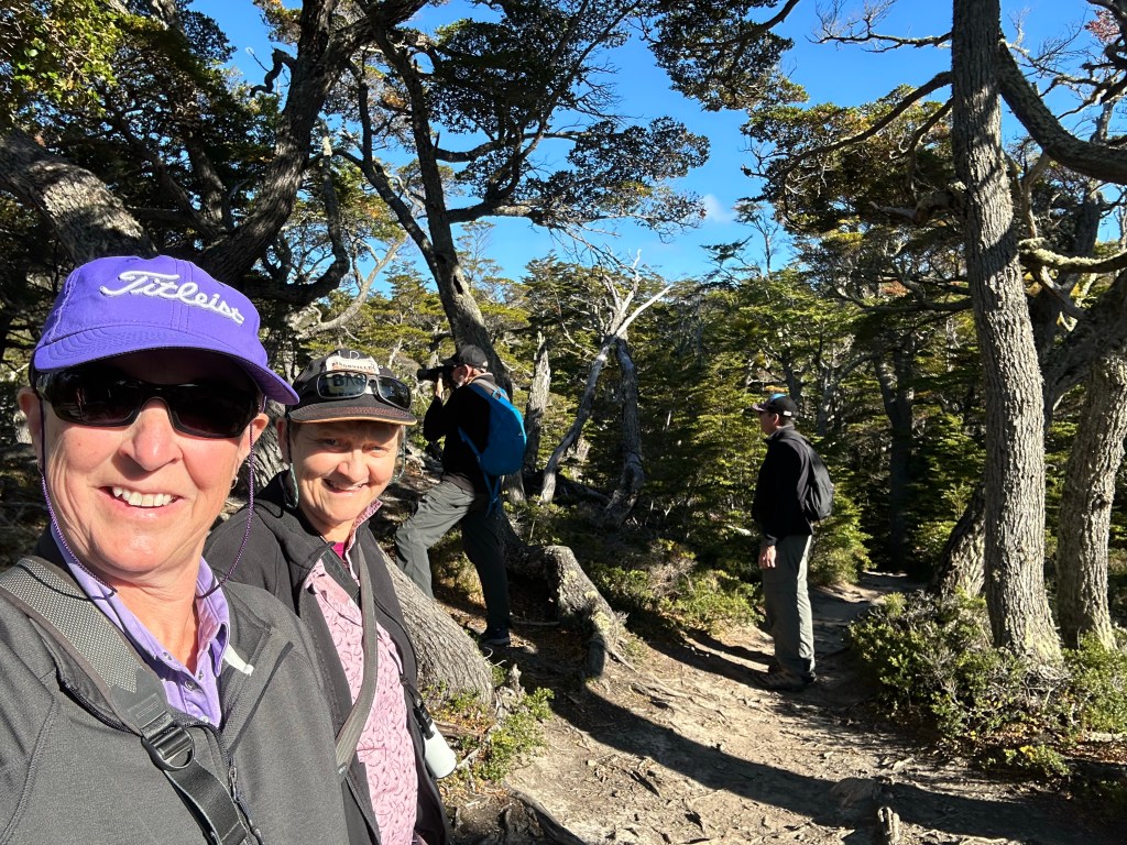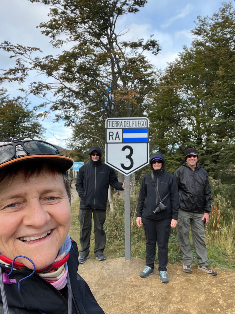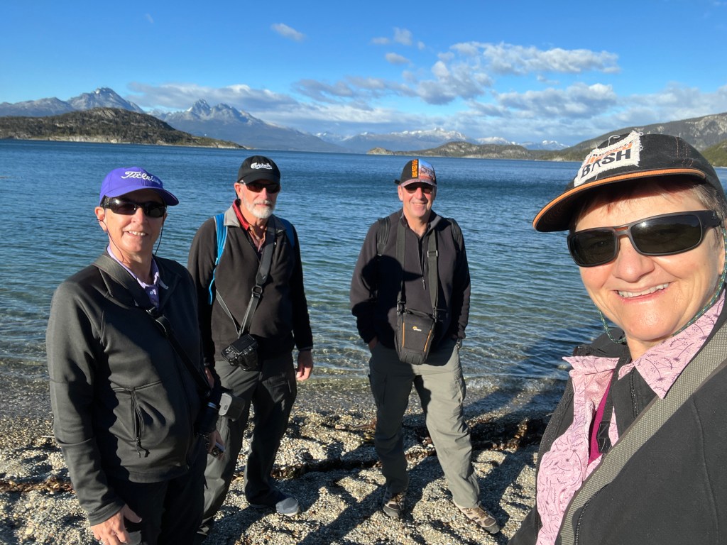 Breaky, pack gear for a full day out with โCanalโ Trekking and canoeing. Pick up time was 8.30, onto a bus with about 10 others plus guides and driver. We headed for Parque Tierra del Fuego, where we paid our NP entry fee 5500pesos per head ($41.47 per head). We started the trek at the edge of the Beagle Channel near the southern most post office. We walked for 8kms along the coastline and through beech forests, a bit of up and down. Caro was able to tell us the name of the round fungi we have seen lots of. They are called Indian Bread and picked from the tree they are edible (tasteless evidently) once they fall they turn black and are no good. We saw lots of different foliage, wild horses, beautiful coastal and mountain views across to Chile. A stop along the way for a cuppa. We also heard and saw a woodpecker and Timango caracara, plus ducks and geese and a range of other water birds including cormorants and the symbol of TDF NP –