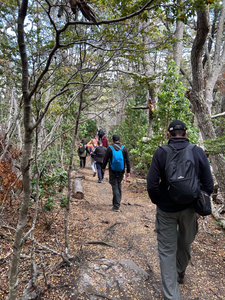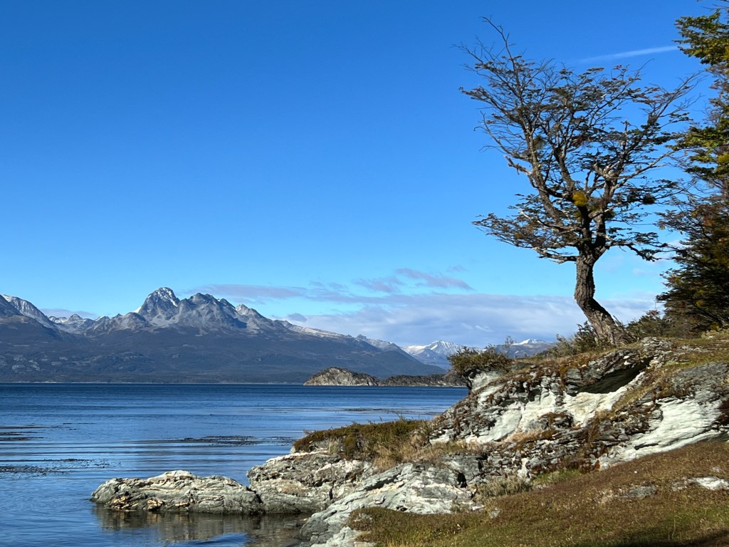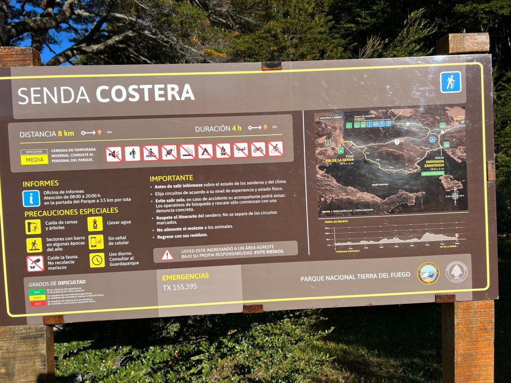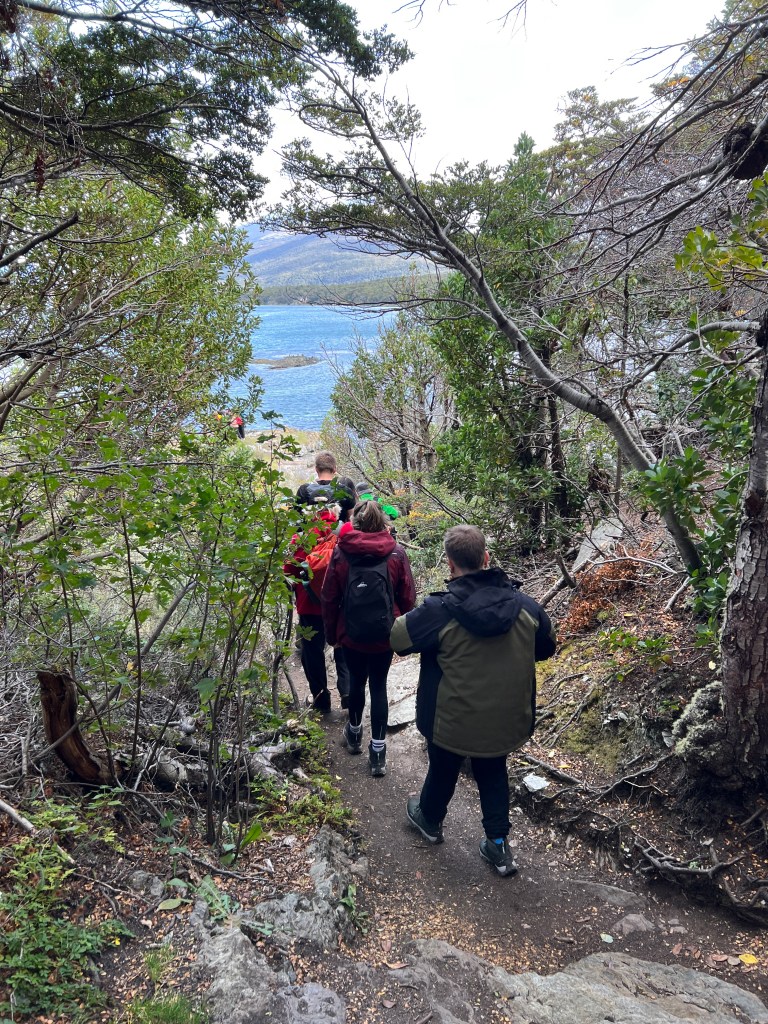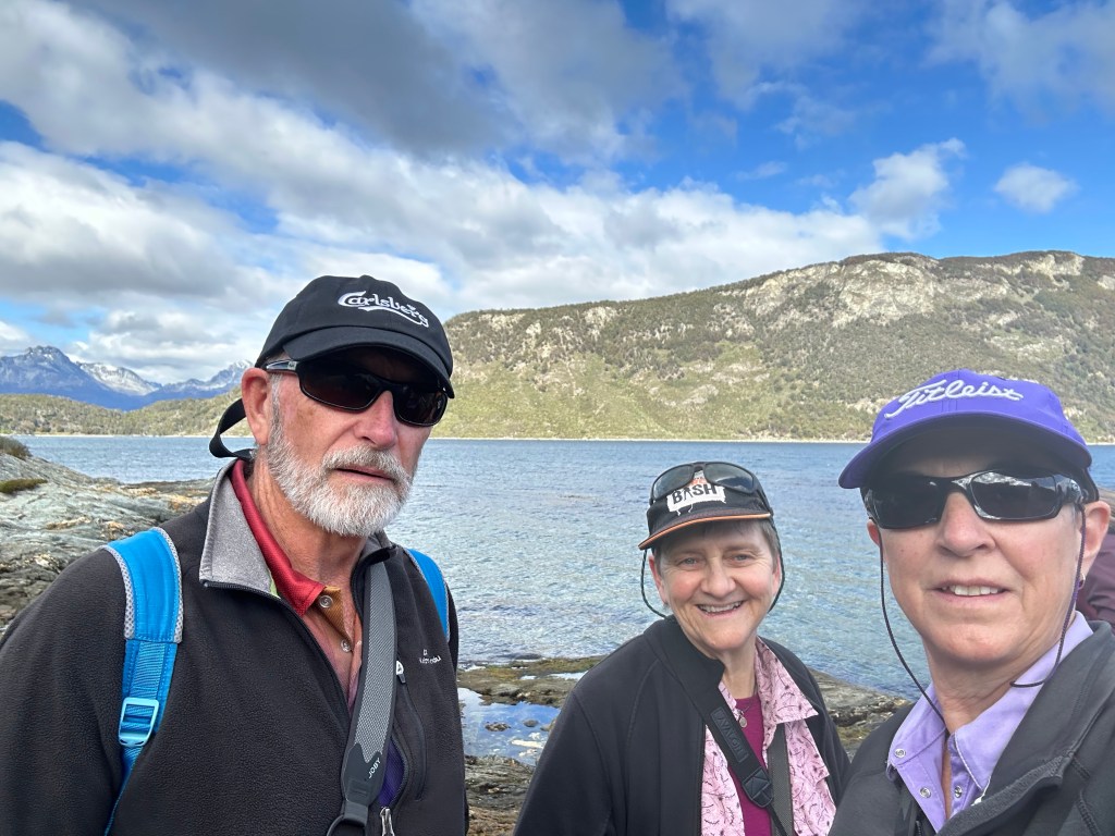 Breaky, pack gear for a full day out with โCanalโ Trekking and canoeing. Pick up time was 8.30, onto a bus with about 10 others plus guides and driver. We headed for Parque Tierra del Fuego, where we paid our NP entry fee 5500pesos per head ($41.47 per head). We started the trek at the edge of the Beagle Channel near the southern most post office. We walked for 8kms along the coastline and through beech forests, a bit of up and down. Caro was able to tell us the name of the round fungi we have seen lots of. They are called Indian Bread and picked from the tree they are edible (tasteless evidently) once they fall they turn black and are no good. We saw lots of different foliage, wild horses, beautiful coastal and mountain views across to Chile. A stop along the way for a cuppa. We also heard and saw a woodpecker and Timango caracara, plus ducks and geese and a range of other water birds including cormorants and the symbol of TDF NP –