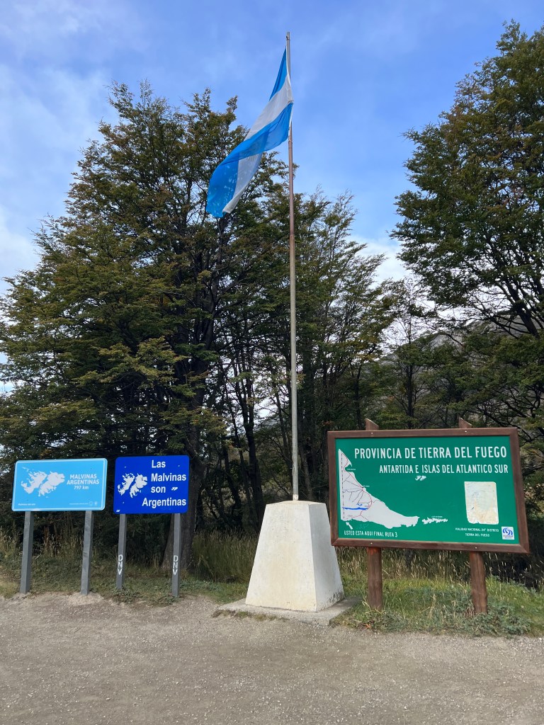 We began on a river which actually carried us along quite nicely, till we bottomed out in shallow bit. Mari jumped into the water and pulled us off, along with the other boat. Then we approached a bridge which we were not allowed under, so again beached and carried boat up over the road and let then slide down a hill, while we walked around to reboard. More paddling along a river, into the Beagle Channell, then to our finish spot on Lake Pattaya. Here is also the End of the Road. The finish of the Pan American Highway. So photos were in order after ditching our equipment. Then back on the bus for home.