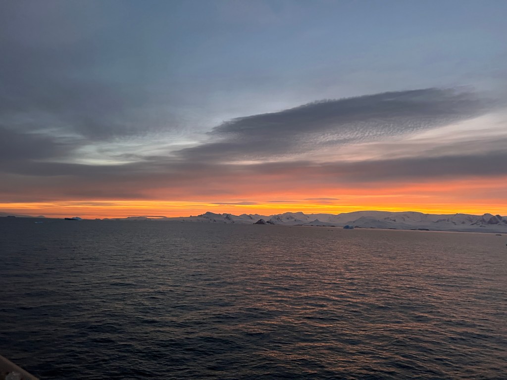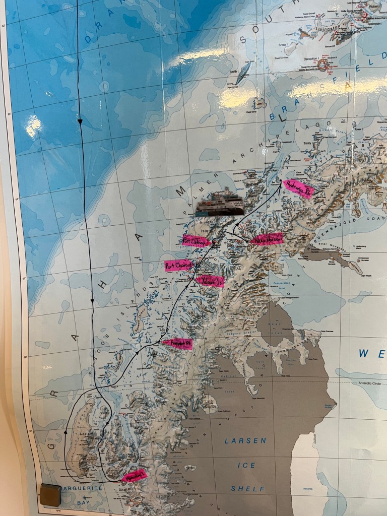 “Winds and landing at Mikkelson Harbour tomorrow. Currently trying to make the best of situation with winds and storms. Could be tricky in the Bransfield Strait. And beyond. Talking about following 3-5metre swells Antarctic Sound Thursday and