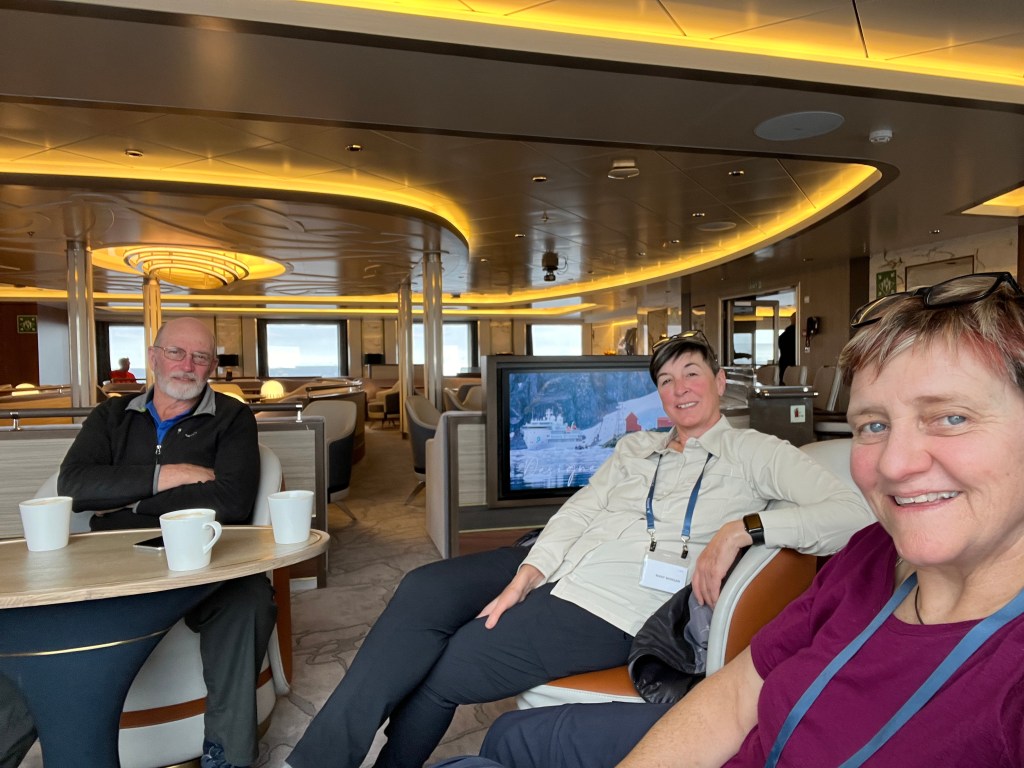 We had a drink in the Blue Hope bar (deck 8 Observation lounge) while sailing through the passage. Then down to lecture lounge for recap and precap.
