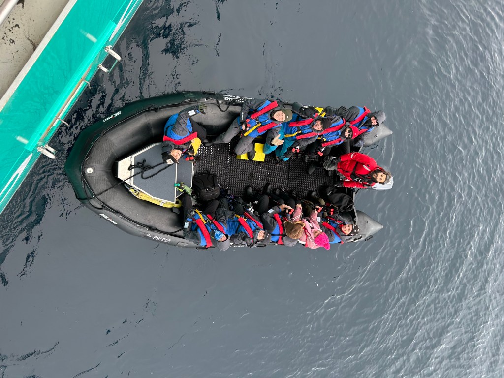 Usual routine, breaky, back to cabin to put the shore gear on and await the call to Mudroom to don life vest and boots. We managed to all be in the same zodiac for a short ride to Hydrurga (latin for leopard seal) Rocks. There was a limit of 49 and then others had to do a zodiac cruise until people were ready to leave.