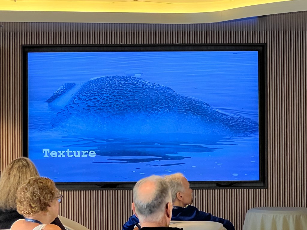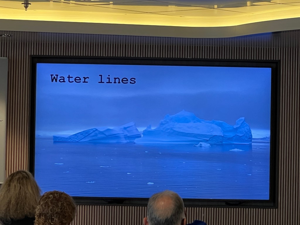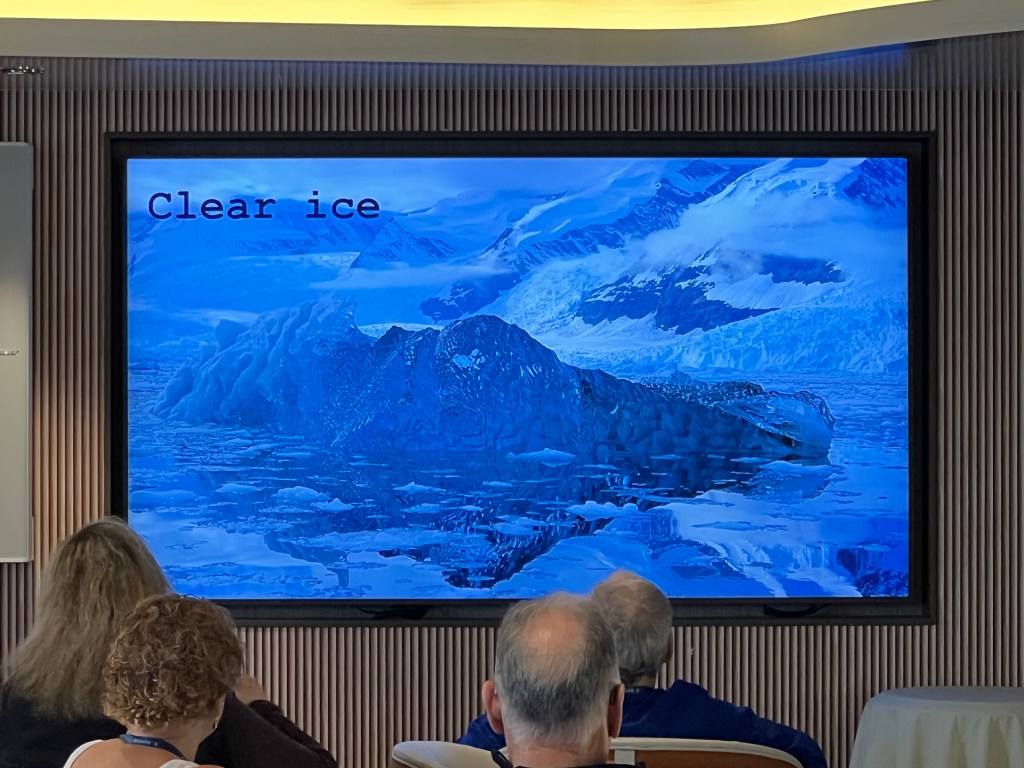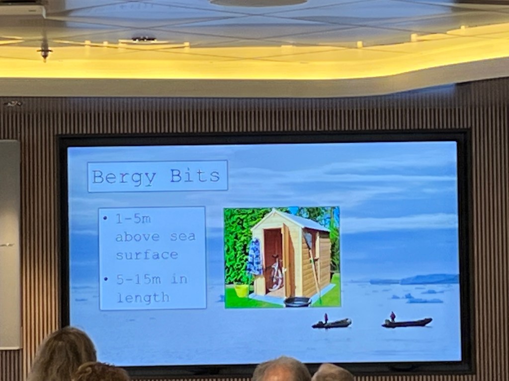 Dark room, great sleep. Up and breaky followed by a lecture at 9 by Stephi – Is that even an iceberg?