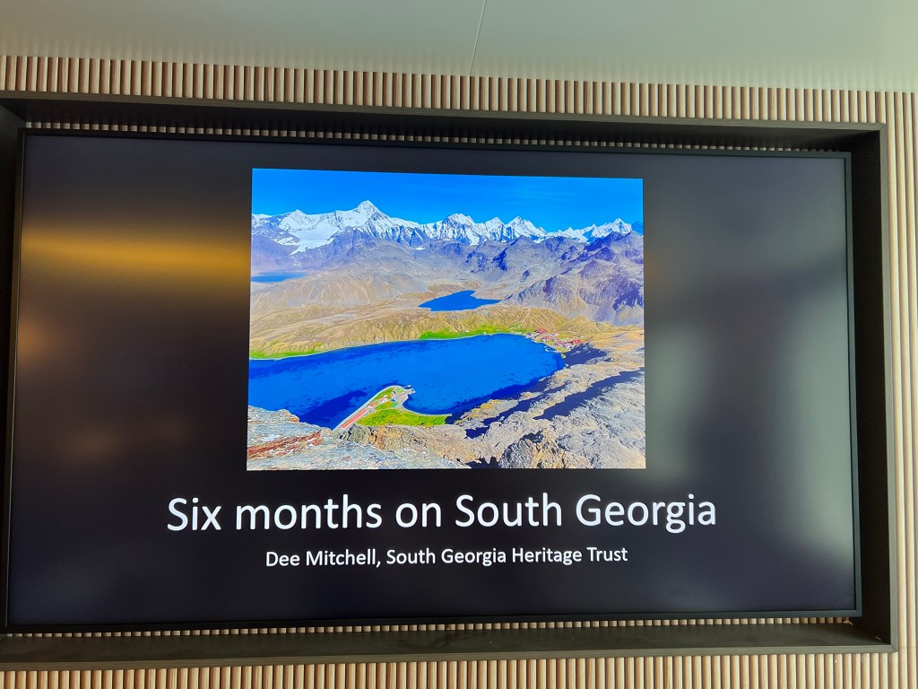 Our pm lecture is ‘Six months on South Georgia’ by Dee Mitchell, South Georgia Heritage Trust. We picked Dee up two nights ago. Someone had to go into Gritvykken to do our Sth Georgia visit paperwork and they collected Dee as we are giving her a lift back to the Falklands.