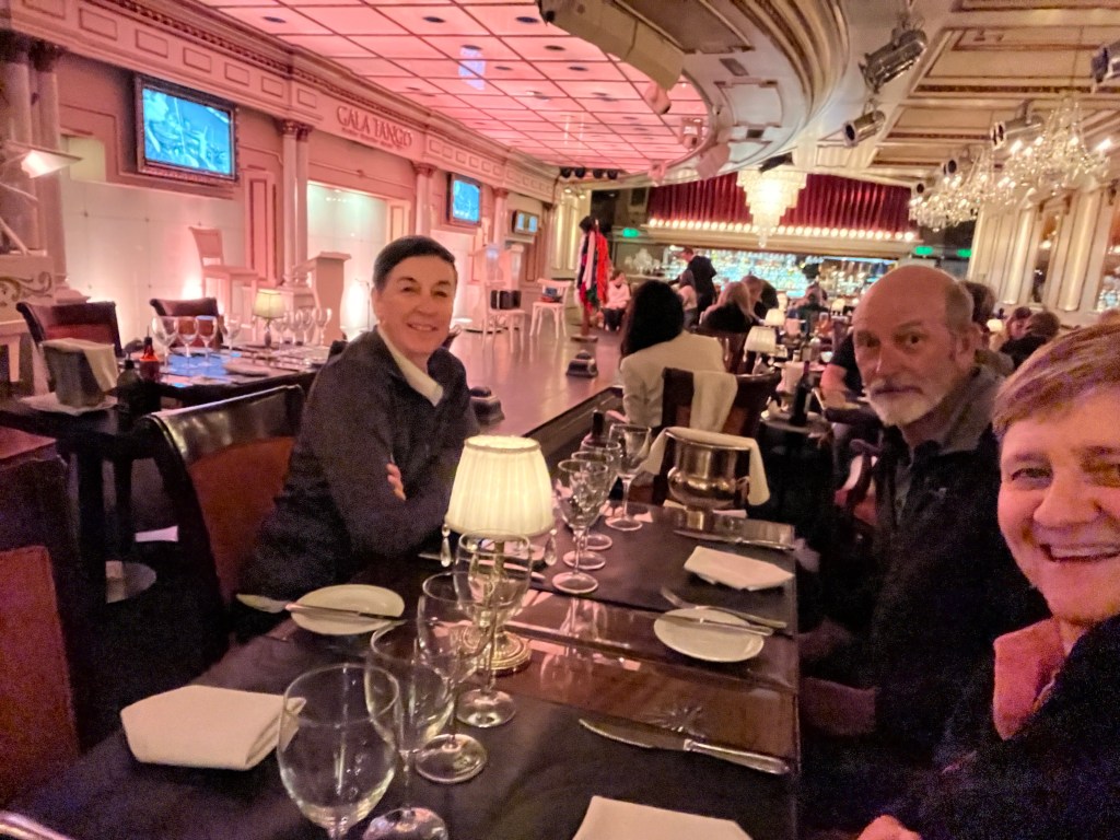 We had booked a Dinner and Tango tour (La Ventana – highly recommend) and had a drink in the hotel bar while we be waited, and waited and waited. Asked Ayrton – our night concierge if he could check, he advised that we are close and often last, so not to worry. An hour or more later we needed to worry. So they phoned and advised we should take a cab. After battling sleep while waiting, we made it, we had a nice meal and drinks and were entertained by a band with piano, accordion and two violins. There were 6 tango dancers, a male and female singer and special appearances by an awesome Native drummer who also stamped (like tap dancer) and swung these strings with some sort of wood or hard object on the end on the floor. It was amazing. I thinks it’s called Malambo. Unfortunately no photography allowed.