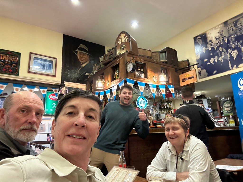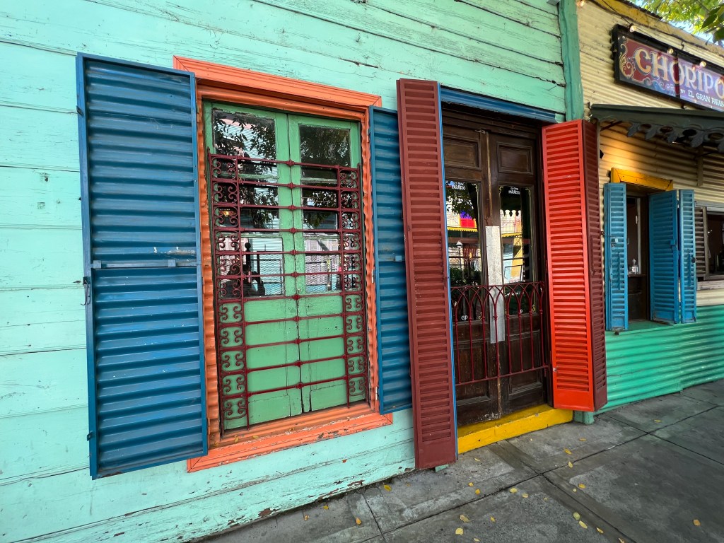 In San Telmo we wandered through Solar de French an example of the French influenced l housing. We also had 15 minutes or so to look the market stalls. I think we all bought something. Back on the bus to head to Caminito and La Boca – a poor area near the port. It has an Italian history too.