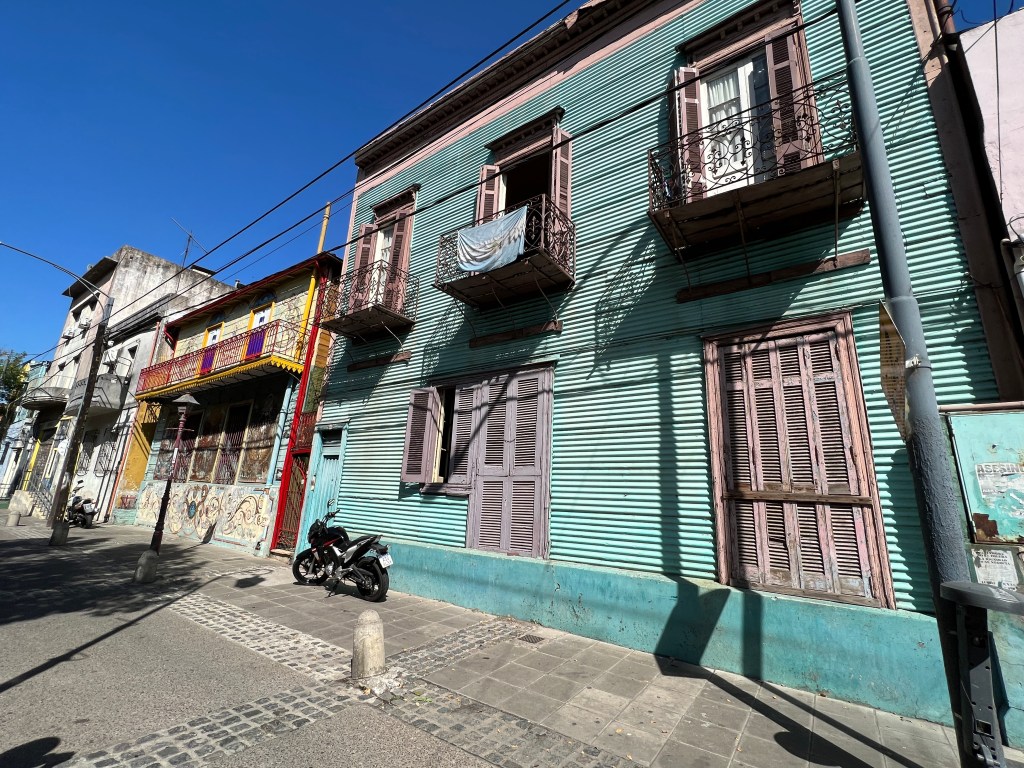 Port workers of the day had no funds for housing, so they used scrap iron and left over paint from the port and ships. They had many families living together, as in a Conventillo (convent) style with many rooms with shared kitchen and bathroom.