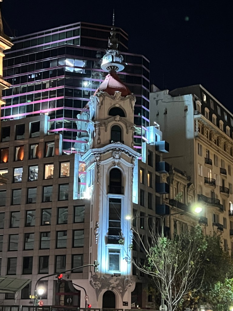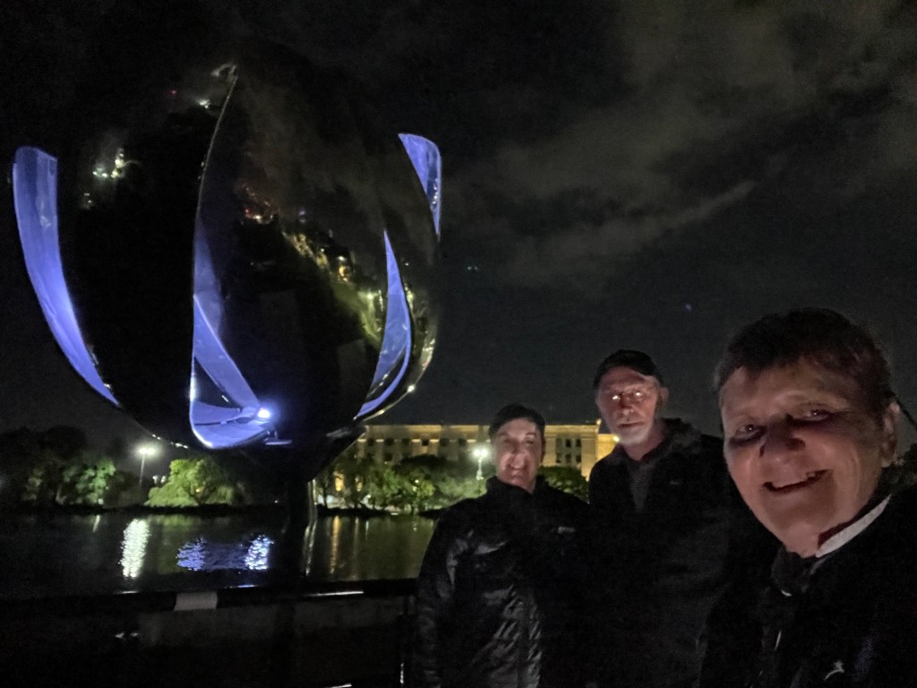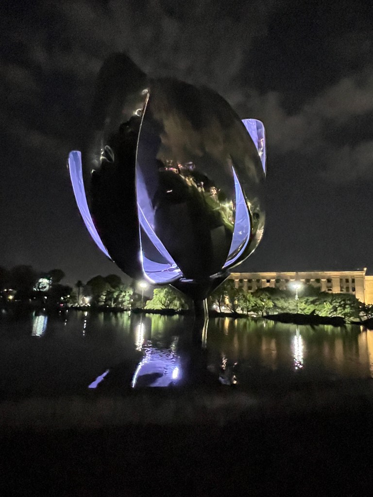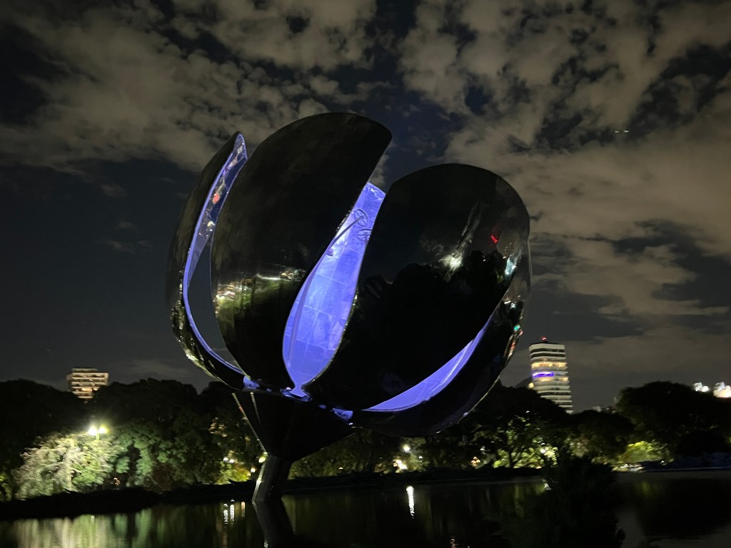 We then walked the streets to view the Obelisk in an area that’s a bit similar to Times Square New York and the Floralis Generica by night and grab a bite to eat. We saw more of the old buildings that were nicely lit.
