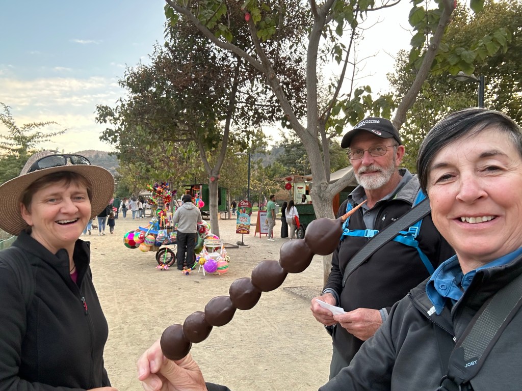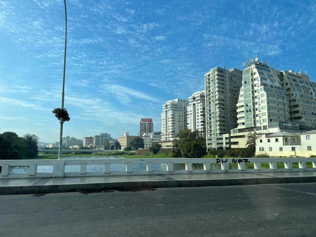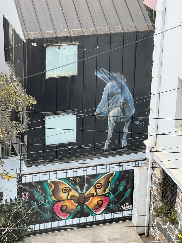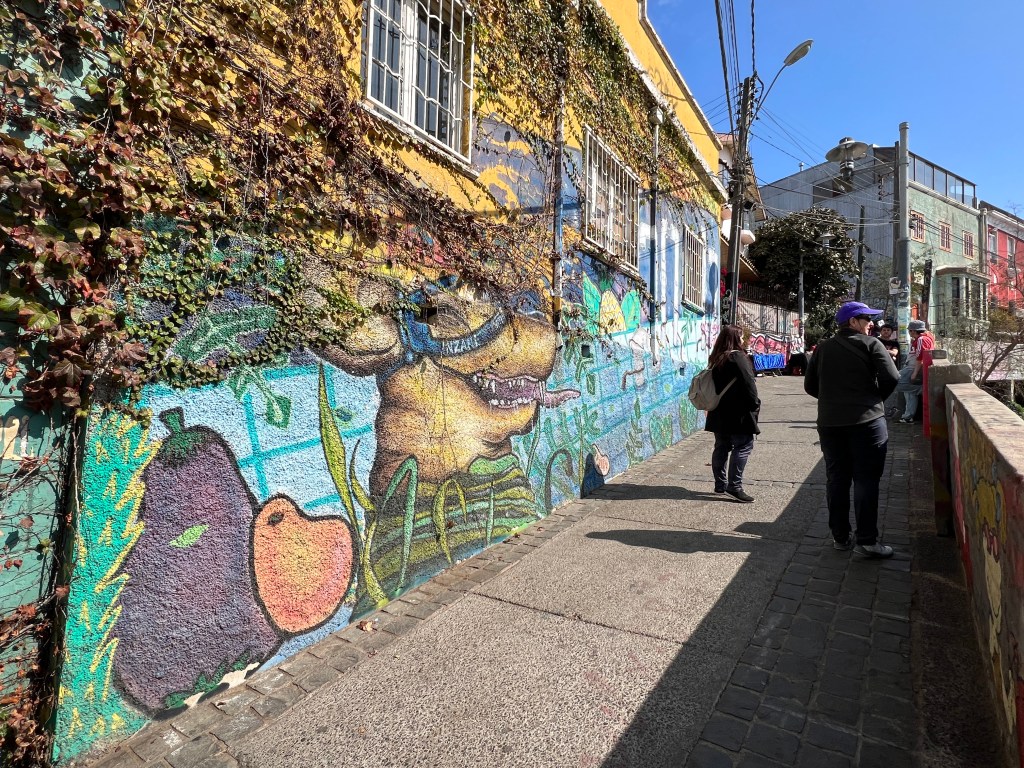 Out of Santiago, past an abandoned copper mine (Chile’s number one mineral, with number two being Lithium) through the mountains via a long tunnel into the Curaciví Valley – rich agricultural area – avocados, lemons/citrus, strawberries. With avocado farmers taking most of the limited water available to produce a key Chilean export.