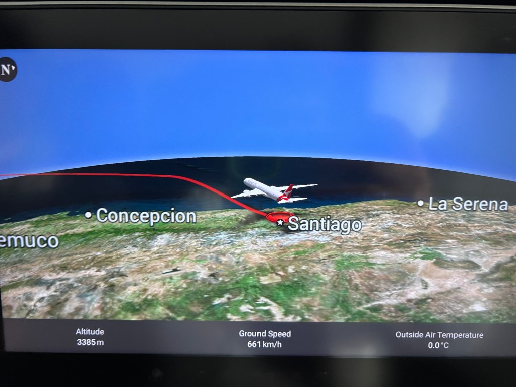It’s a Qantas flight and we had back row seats.