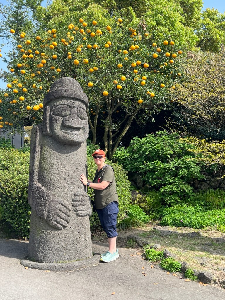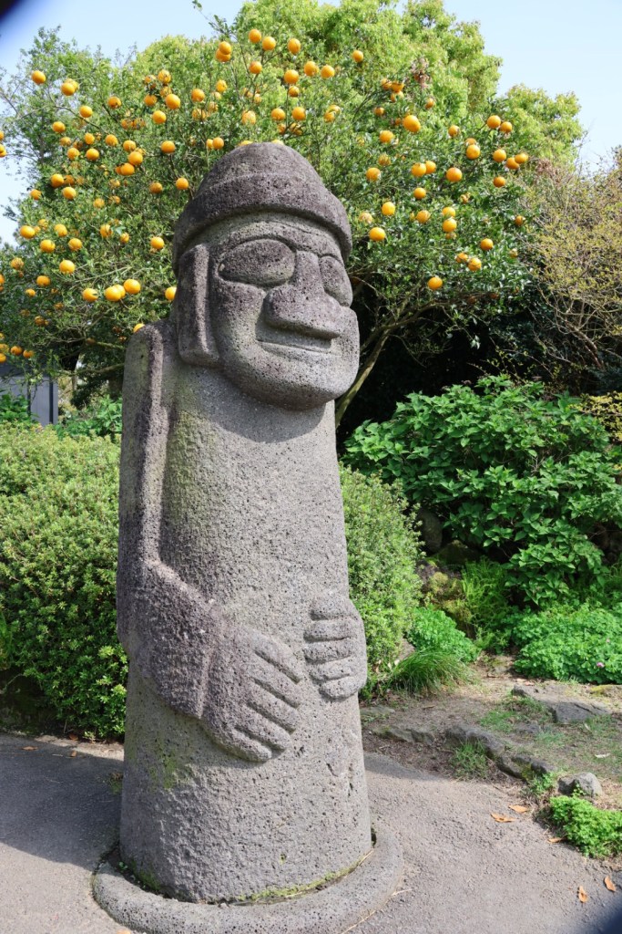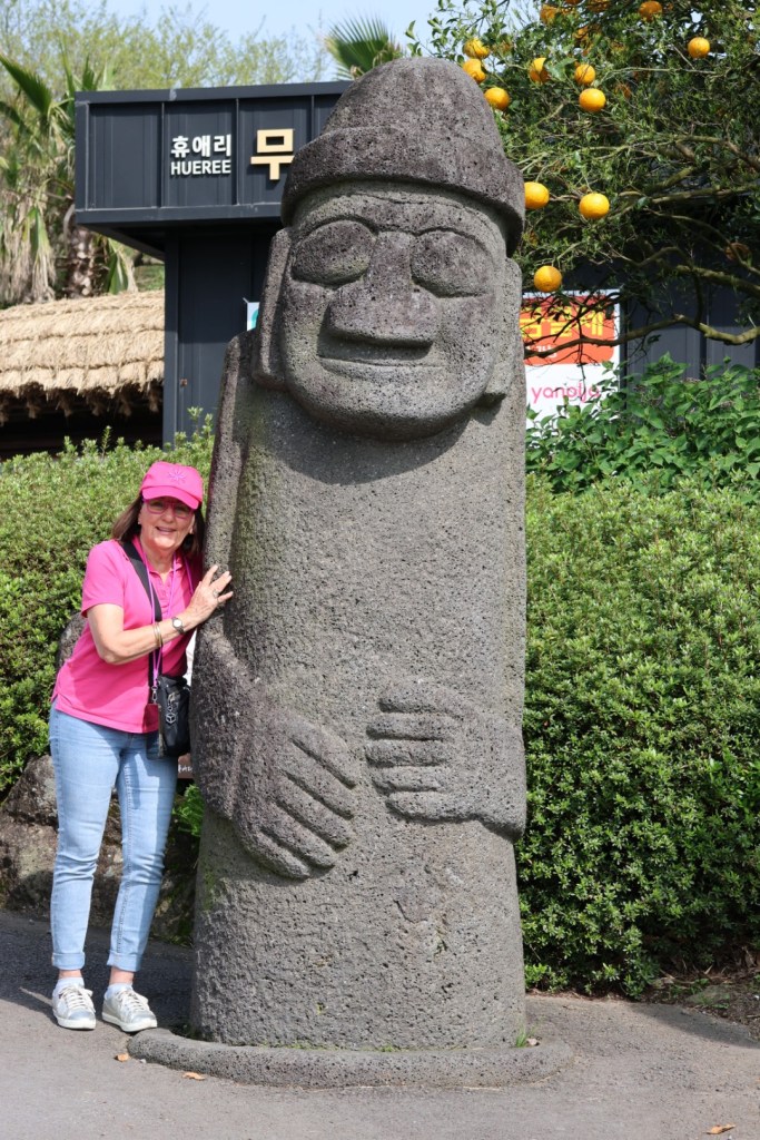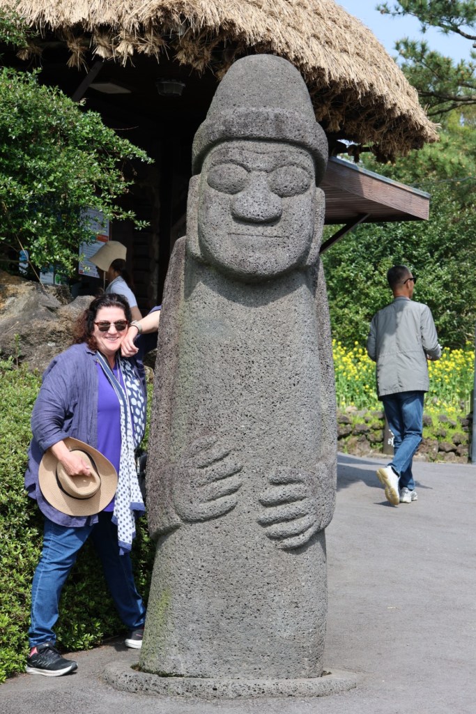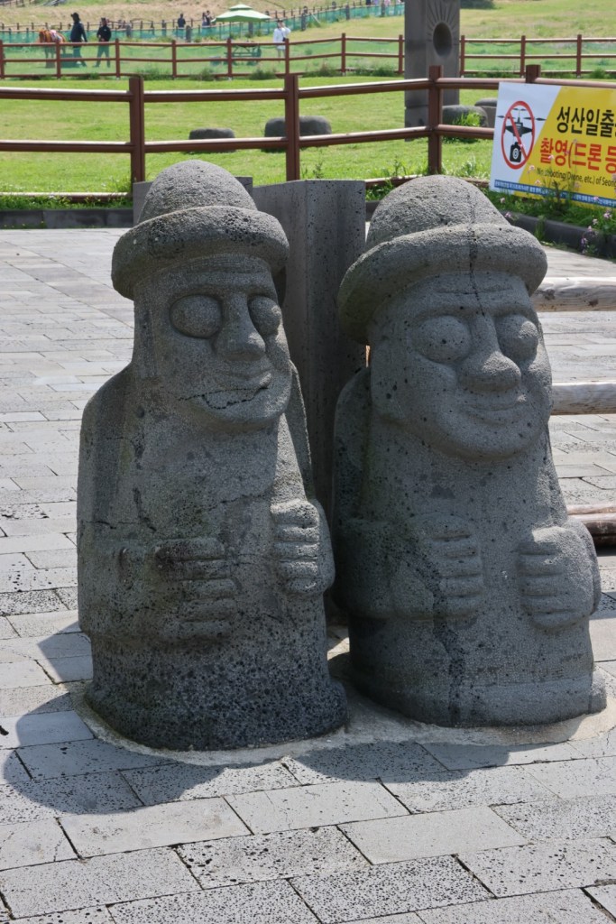 Stone grandfather-dol hareubang are dotted around the island. They are a form of totemism. In the mainland the totems are wooden. The Stone Grandfathers are often standing in a couple, both men. The man on the right side has his right hand up signifying military/bravery/strength and left hand down. Left side man has left hand up signifying scholar/knowledge. It’s a yin and yang thing. These are found at entrances/gates to villages etc. There is no definitive history of how and where these began. Although some info I sourced suggests 1754 as origin. We saw a few in different places we visited throughout the day.