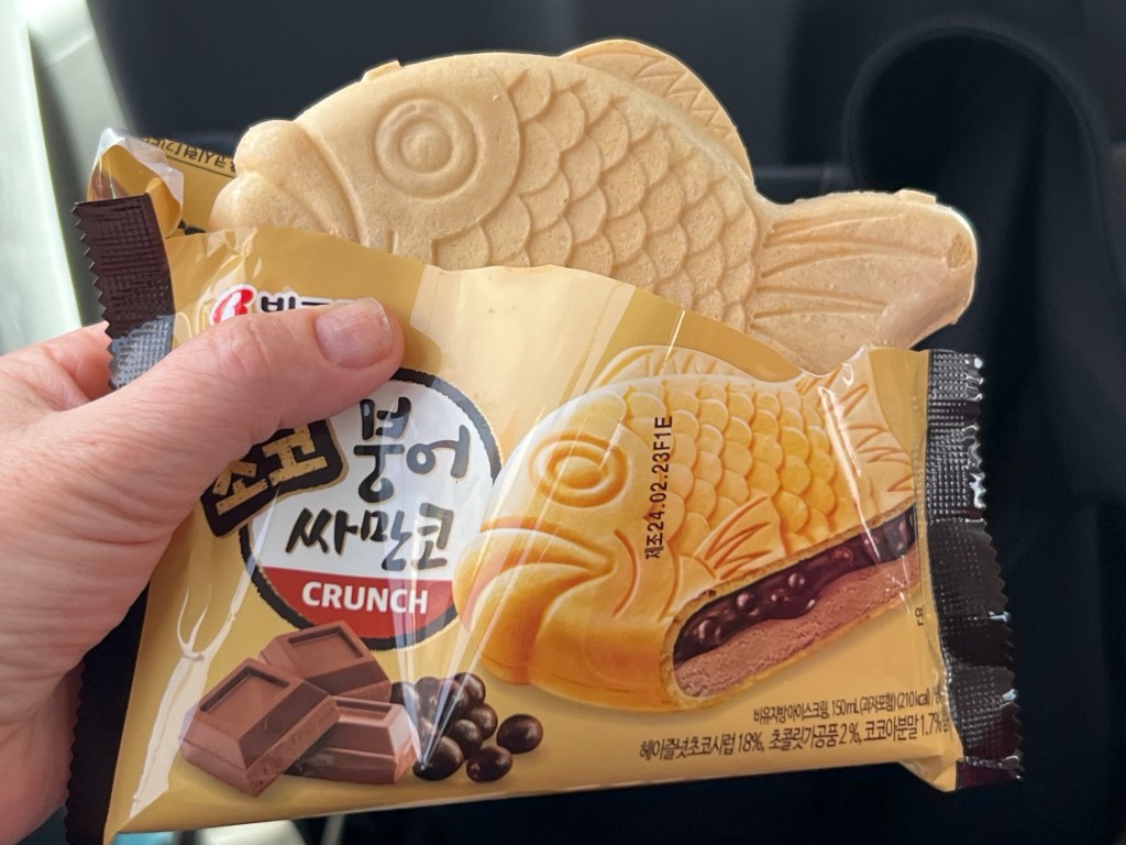 Alex then shouted us some ice cream. They are Samanko Crunch with a Smile. A fish shapes outer layer almost like soft cone/wafer. One was filled with vanilla and red bean paste, the other was chocolate. Both delicious and a nice ‘little something sweet’ to follow lunch.