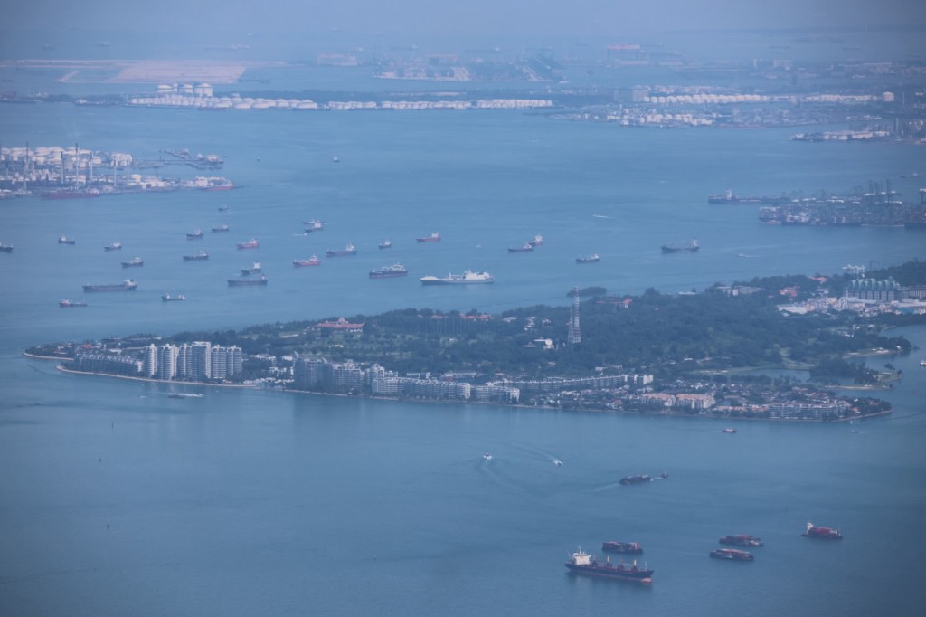 Took some pics on takeoff. So many islands around here, many many ships in the harbour and good views of Singapore city.
