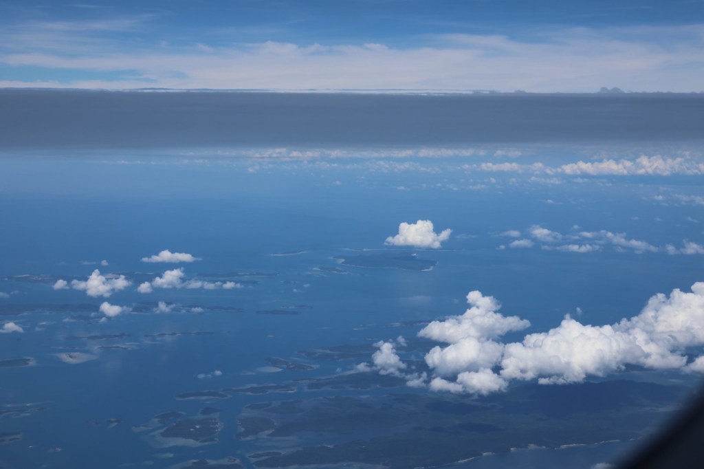The islands continued for a good distance into flight and then what I think was a smog cloud appeared.