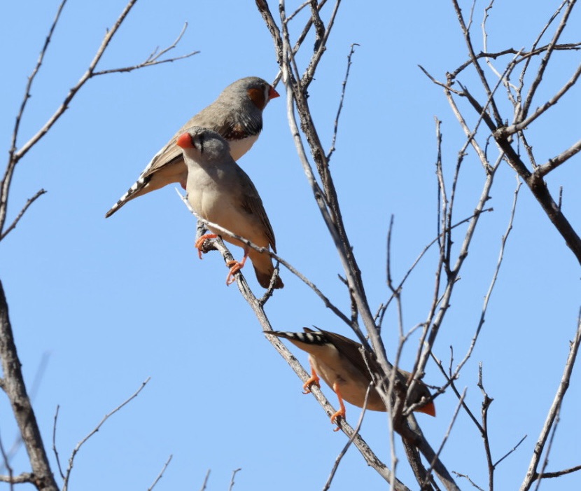 We did see a couple of nice flocks of budgies formation flying through the dust and a beautiful pink and yellow sunset.