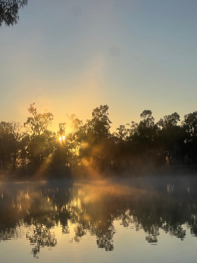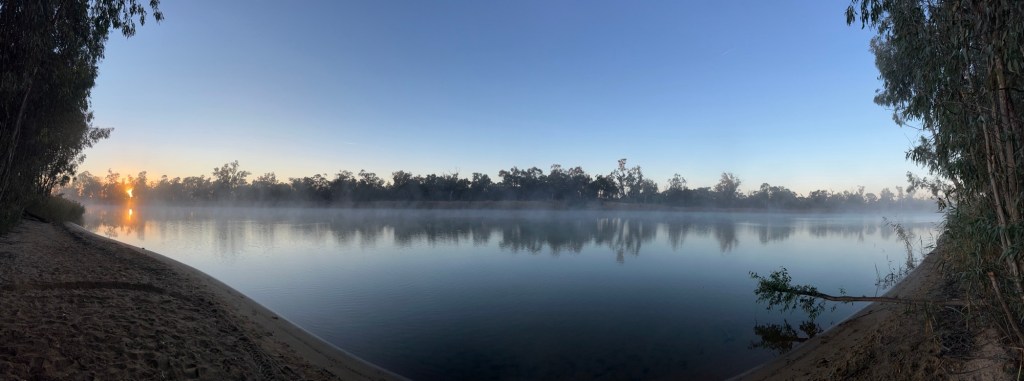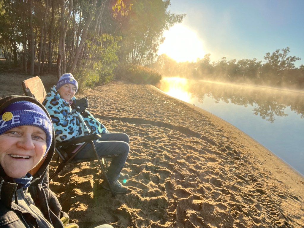 Kate’s new awning set up was warm and dry last night and waking to river views with mist milling on the sun drenched water was too enticing and got me out of bed for a photo or two.