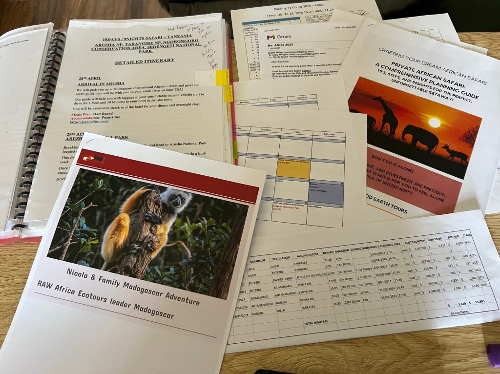Throughout August Suzie, weaved magic with her connections with Wilson Ishmael and indomitable Eve from Ride for a Woman. There is more of a story here but will leave that to somewhere along the way – on the road or plane or boat. Madagascar research landed us with Raw Africa Ecotours who are ironically located in Williamstown – just across the bridge from Aunty Sue!!