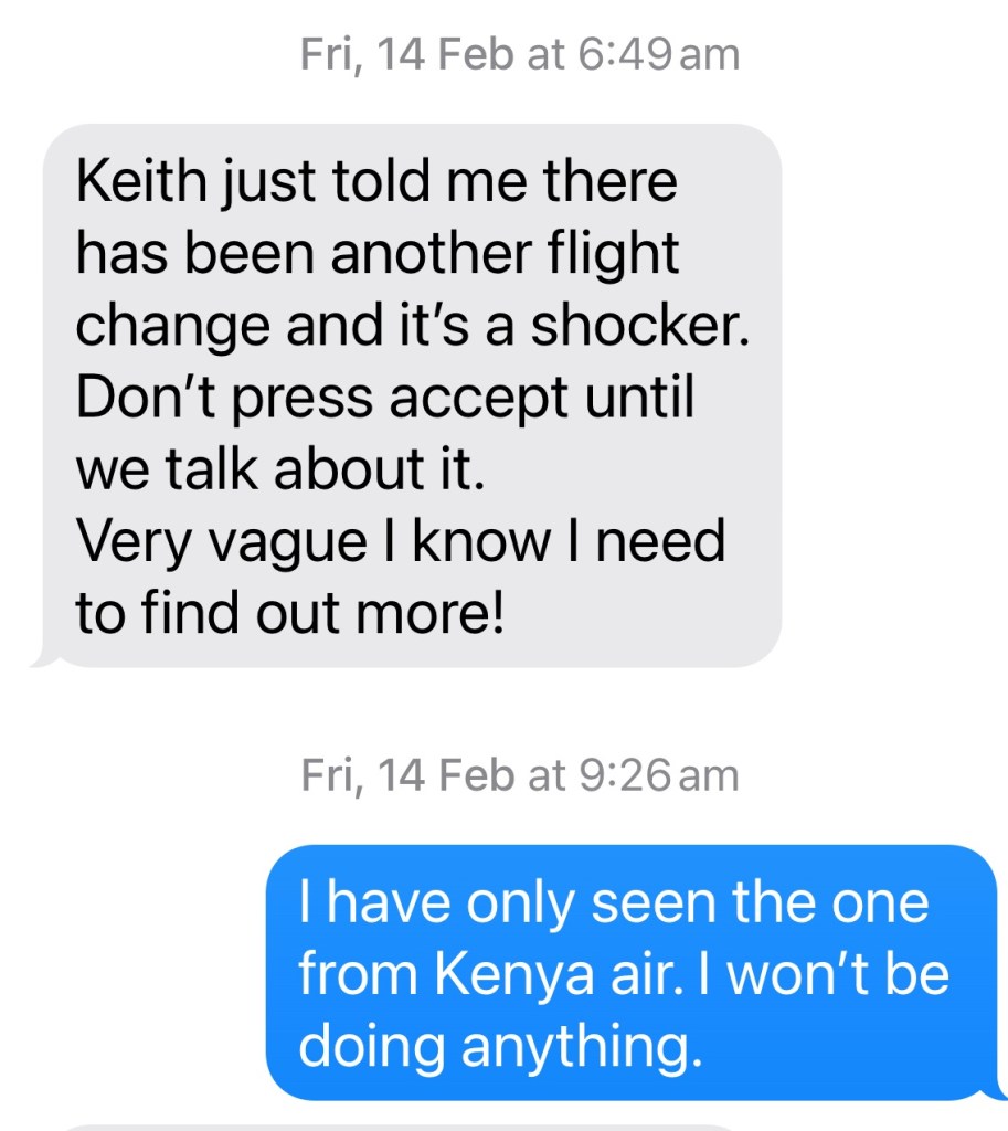 Emails were flying and Keith (yes that’s uncle Keith) was charged with the job of Flight director. I’m sure this is a task he regrets as it has not been straightforward.