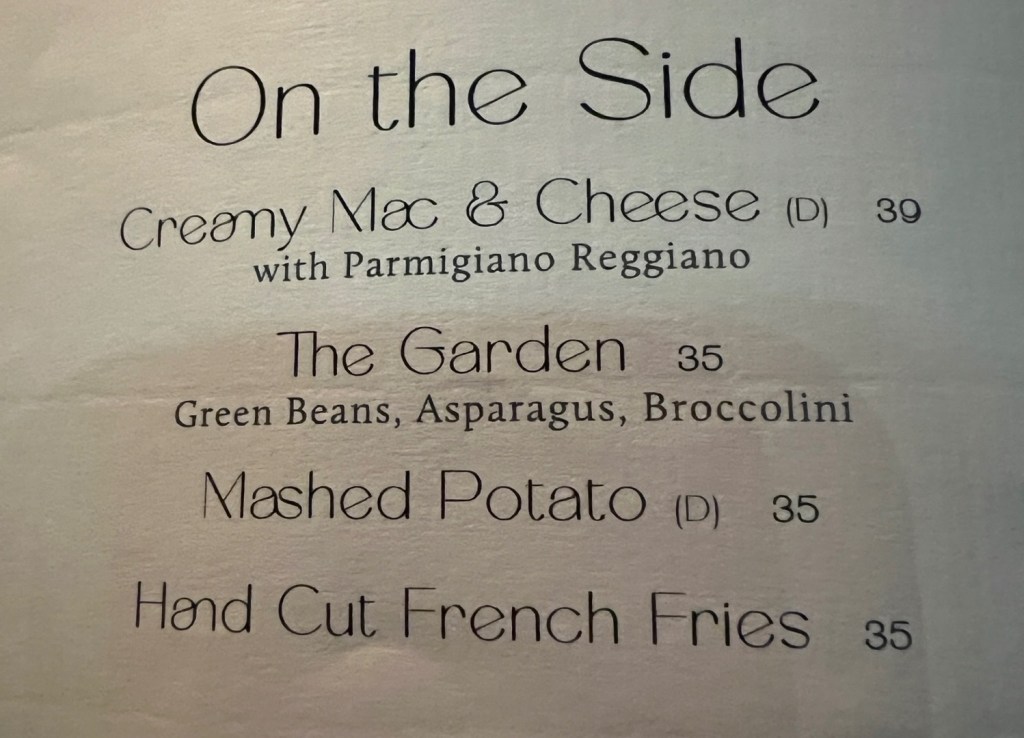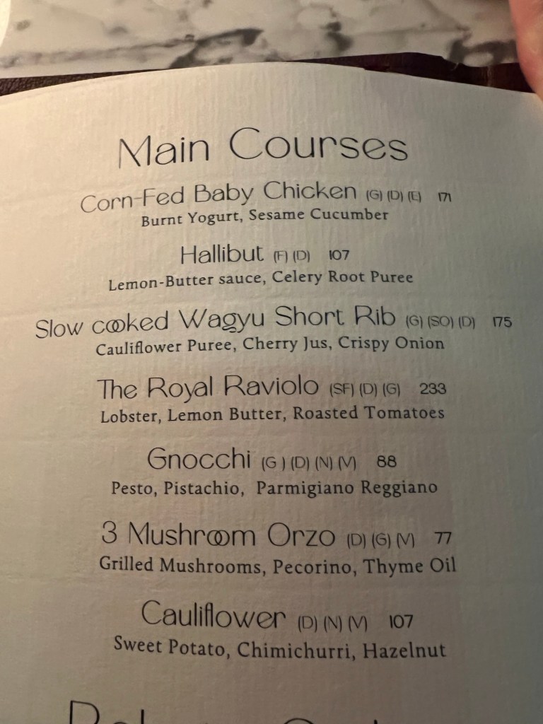 We did. The service was incredibly attentive – it felt like every waiter and bar staff in the place came to welcome and assist us. We had a drink and decided to lash out and eat.