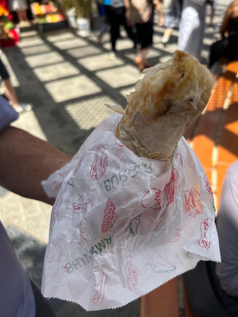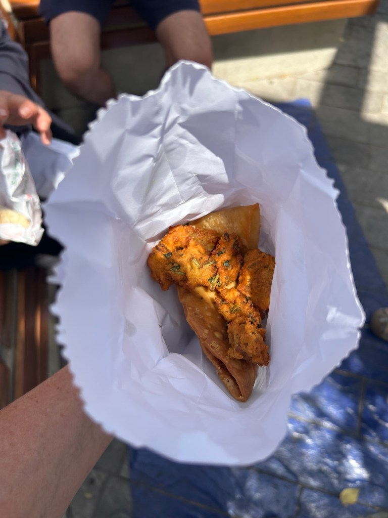 We walked along to the river where we got to try a chicken schwarma and some vegetarian foods – curry samosa, a cheesey samosa and some falafel/vegie type fritters. All quite nice.