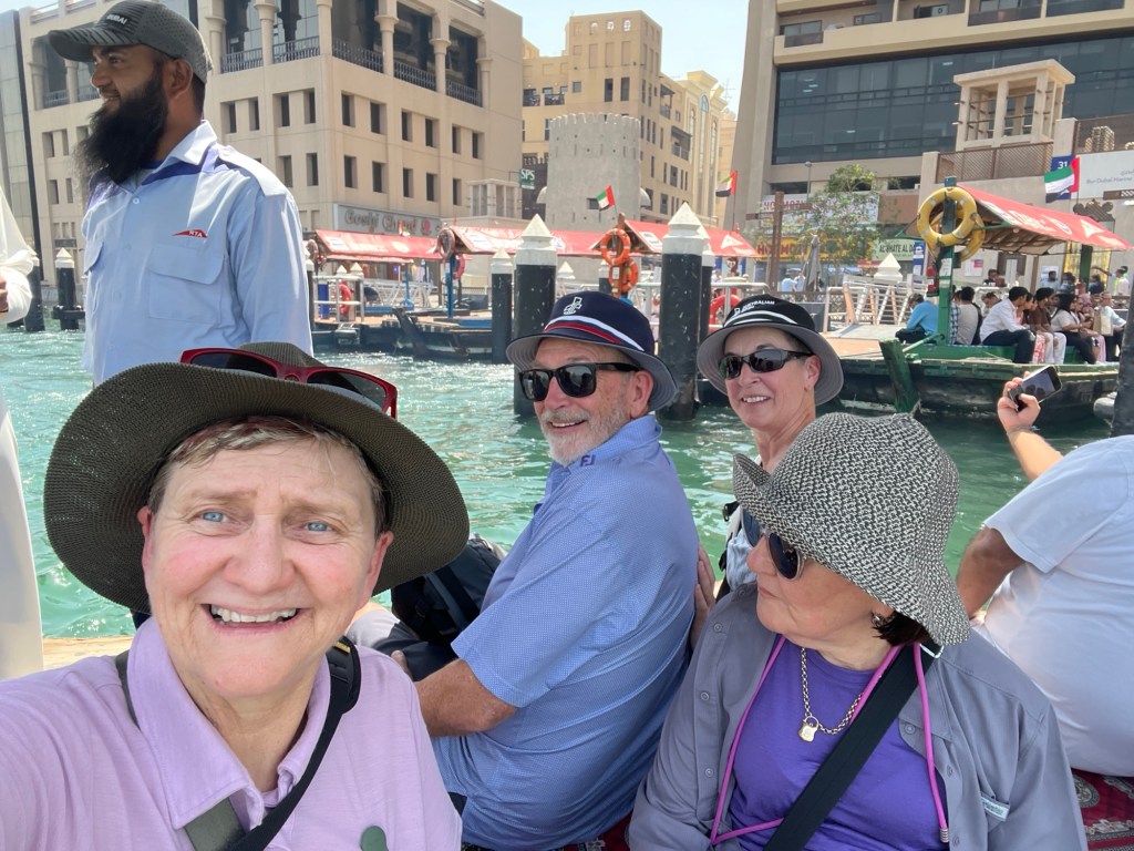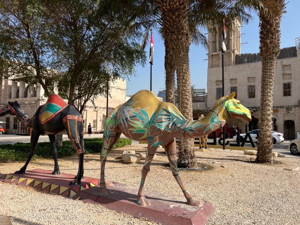Our guide Hamza met the group (of 16) at The Heritage hotel in the old city at 9:30. We arrived early and had a bit of a wander around what turned out to be Fake Old City – actually a Hotel owned and built by Hilton group 8 years ago. It’s built in the Persian Indian style. The real original Dubai people were desert people who lived in tents.