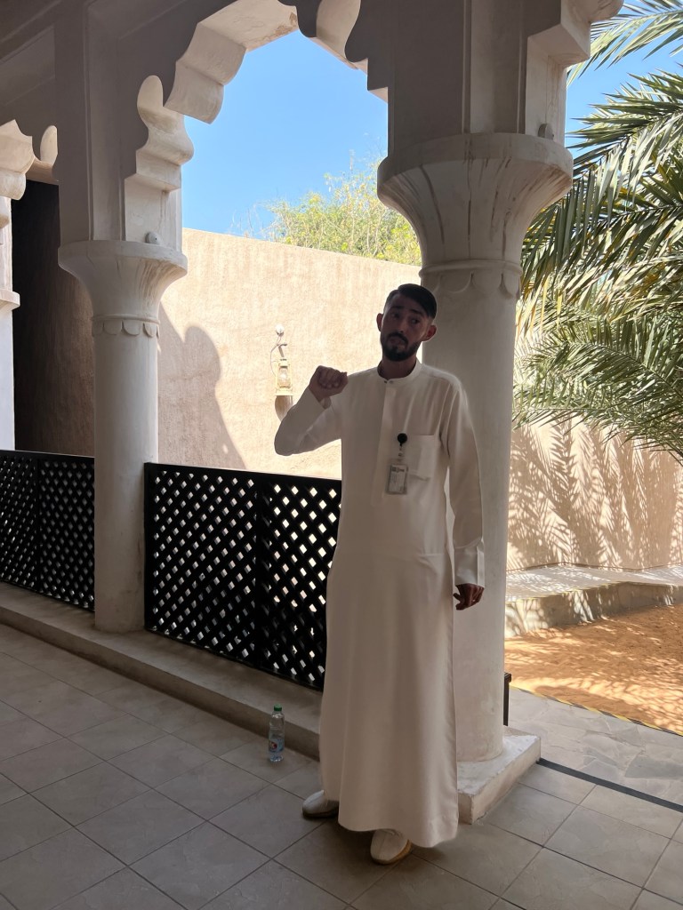 We tried Arabian coffee and Hamza regaled us with stories and information about history and life in Dubai.