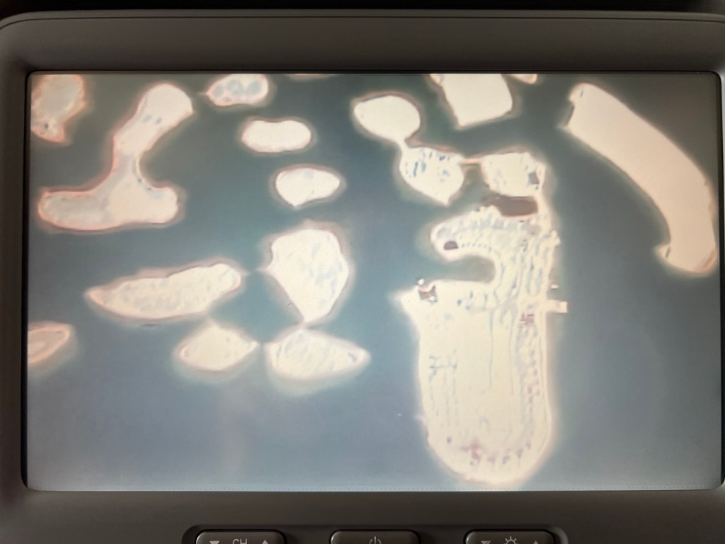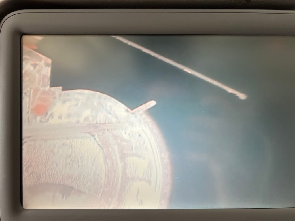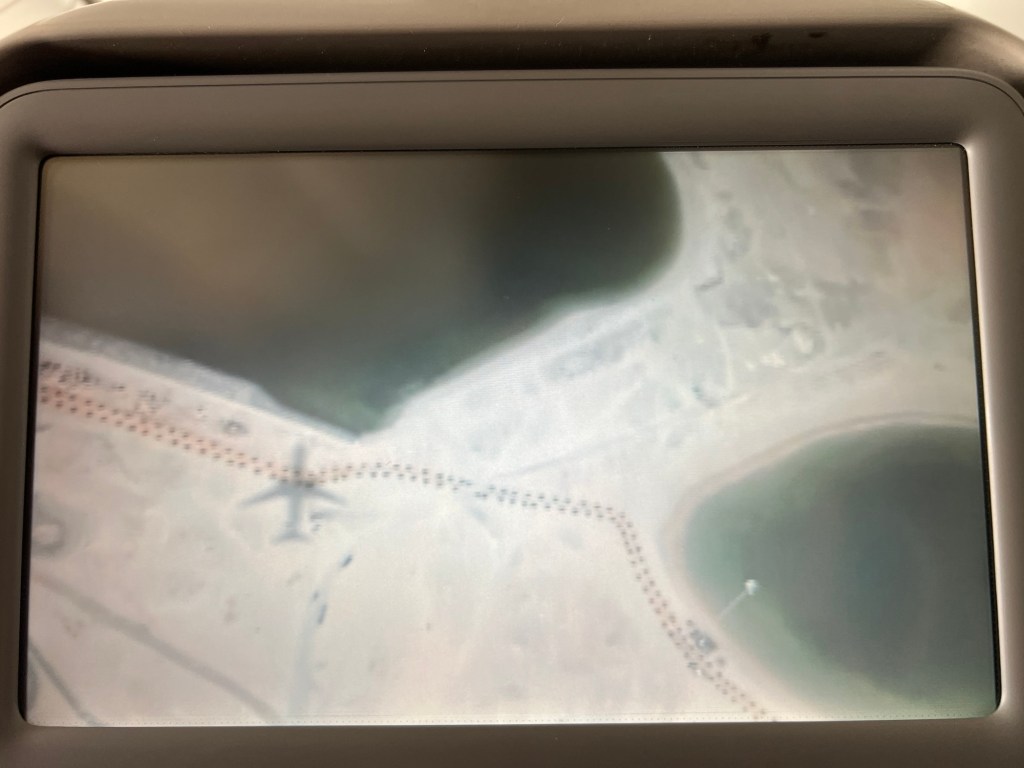 Suzie’s flight attendant told her that our delay was due to a sandstorm which looking out the window looked fair. It’s pretty brown and murky.