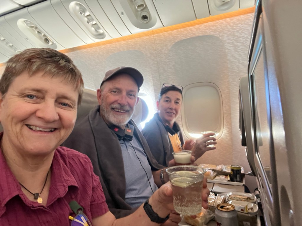 We got a bit of a surprise once landed, we were packing our bits and pieces when a lovely flight attendant came and asked if we were travelling with a passenger in first class. Of course we were, so she escorted us off the plane from row 33 – it was a bit of a rush and we felt bad pushing past people, but we did catch up to Suzie before immigration.