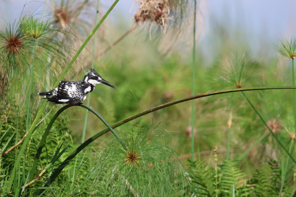 Ishmael shared that the Shoebill has to wait for the Mabamba to swim past as the Shoebill can’t swim. So the shoebill waits and watches and we wait and watch cameras trained on the slightest movement. We wait and wait and the Shoebill stands like a statue.