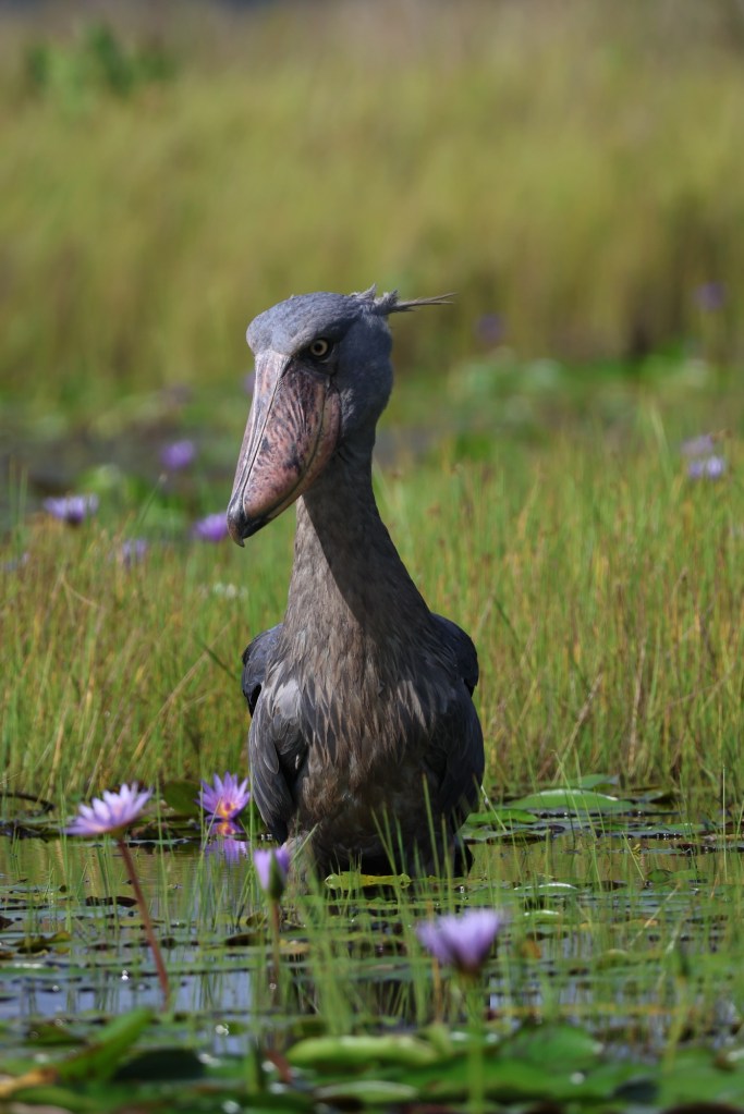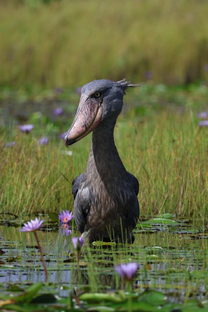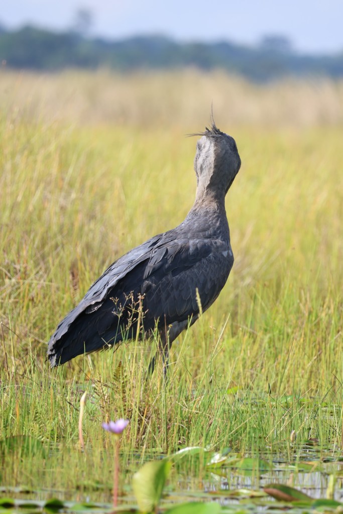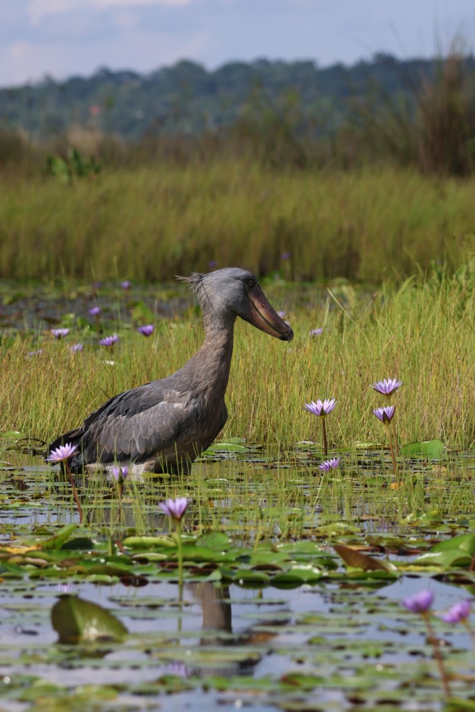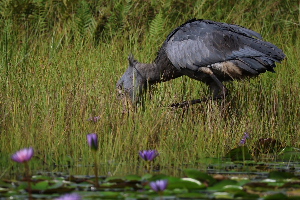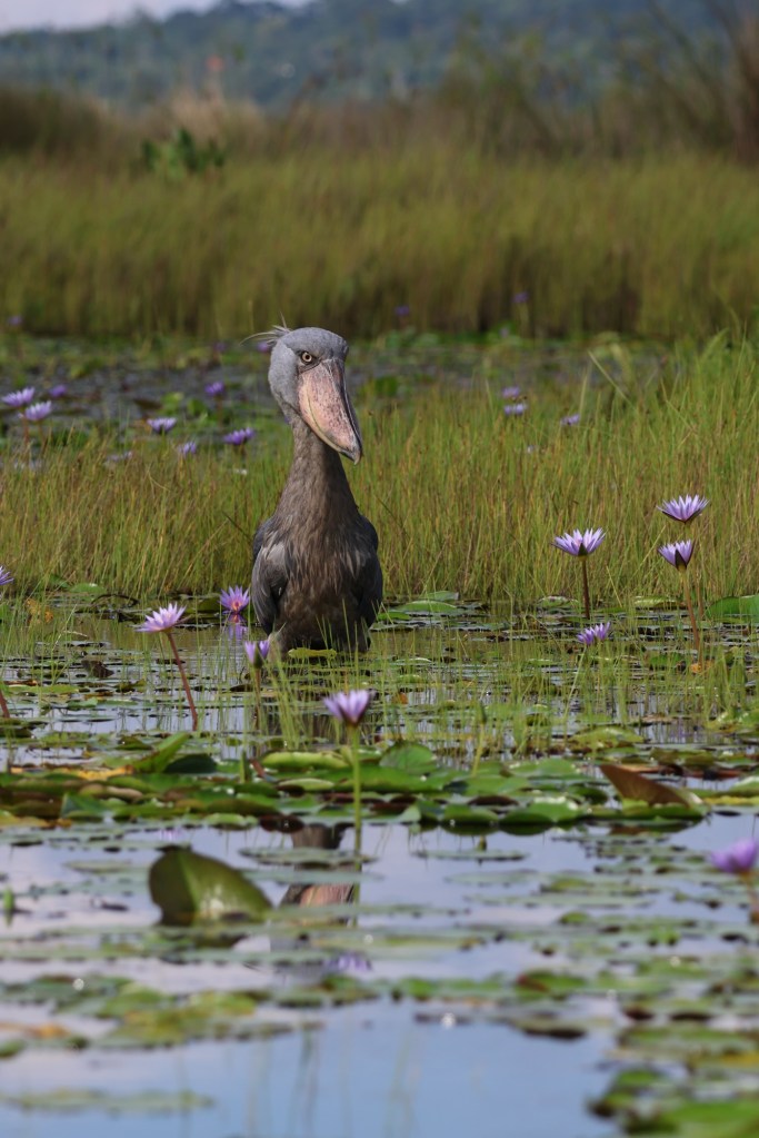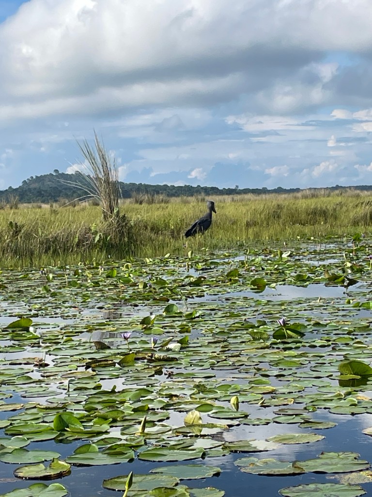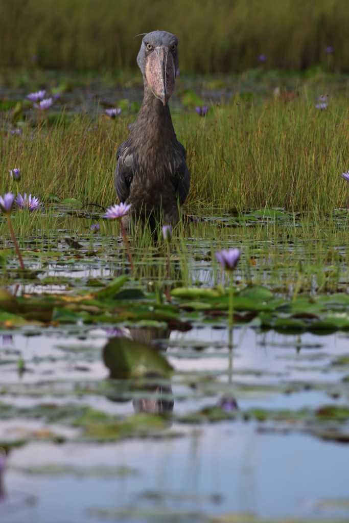 After probably 30-45 minutes of travel and taking bird pics. Ishmail spotted a Shoebill. A huge grey prehistoric looking dodo like bird. About a metre tall and just standing like a statue. We cut the motor and sat and watched and waited.