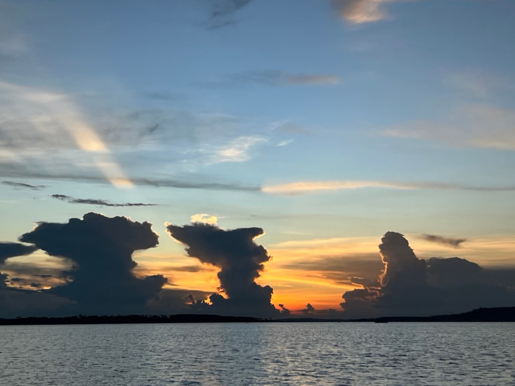 We cruised back at a much more sedate pace with our drinks and chatter and views of building storm clouds in the sunset, bird life and lots of locals fishing in boats of all shapes and sizes and from the land. Some with poles, some netting.
