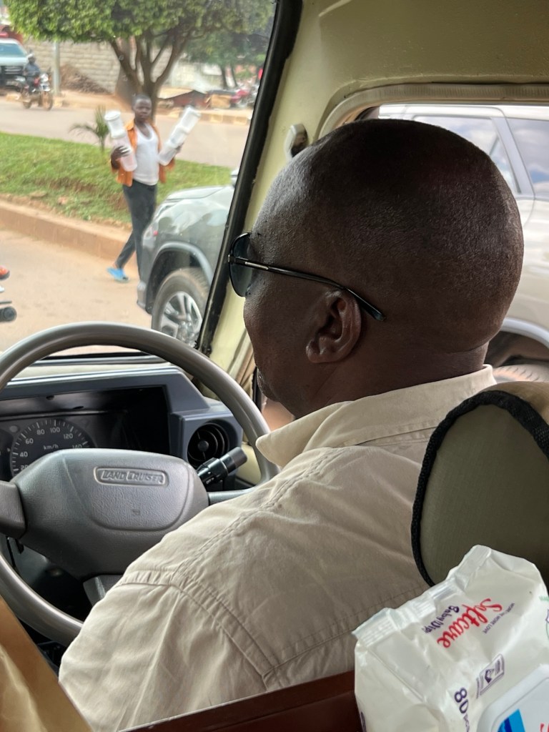 The taxi vans (mostly Hiace vans are dodging and merging chock a block with people and stuff, boda bodas (motorbike taxis) dodge in and out. Cars merge without warning, two lanes seems to be three, lots of gentle horn tooting we canβt quite figure out. Chaotic but it seems to work.