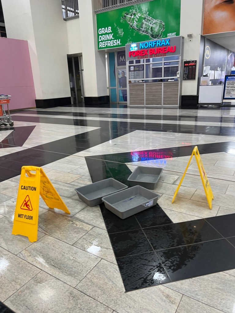 Onto our check in desk. Past leaking roof. And through yet another security scanner.