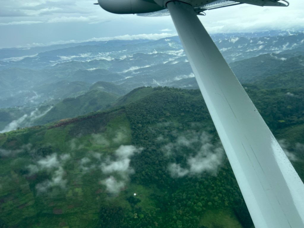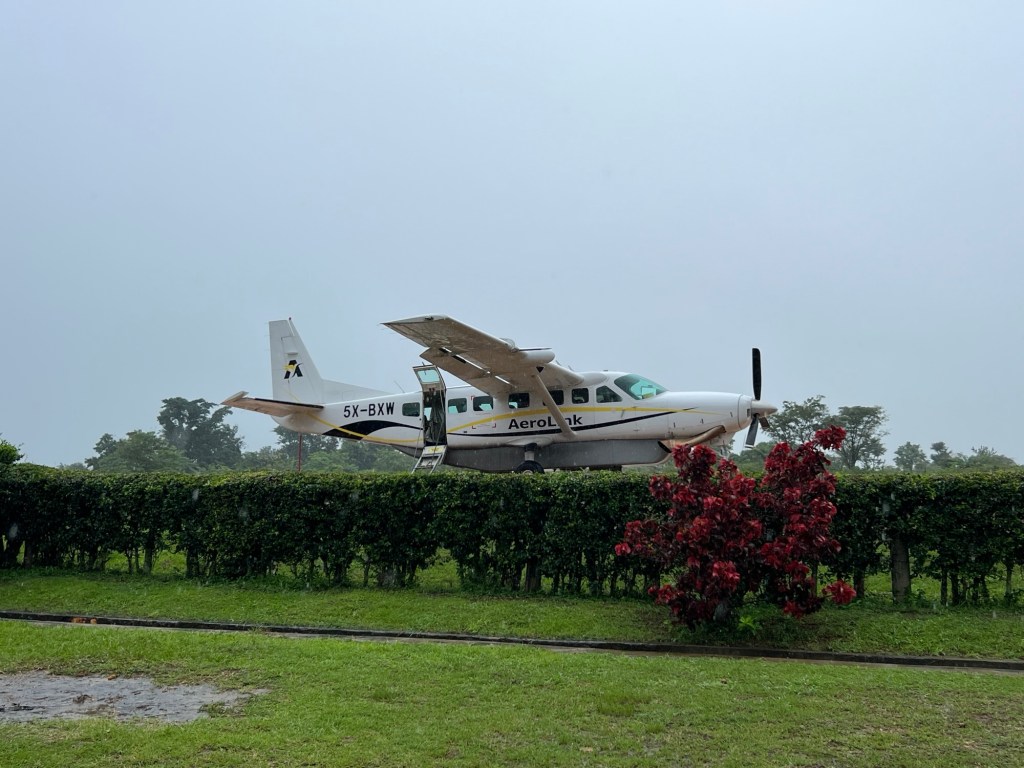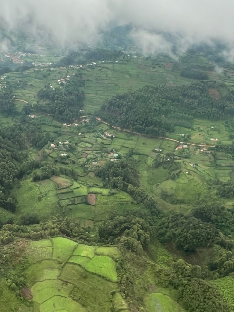 Still raining, had some clear skies and lots of cloud and rain as we flew over Lake Victoria towards Kisoro, where we stopped at 9:20 to pick up two passengers I think. A short 5 minutes or so.
