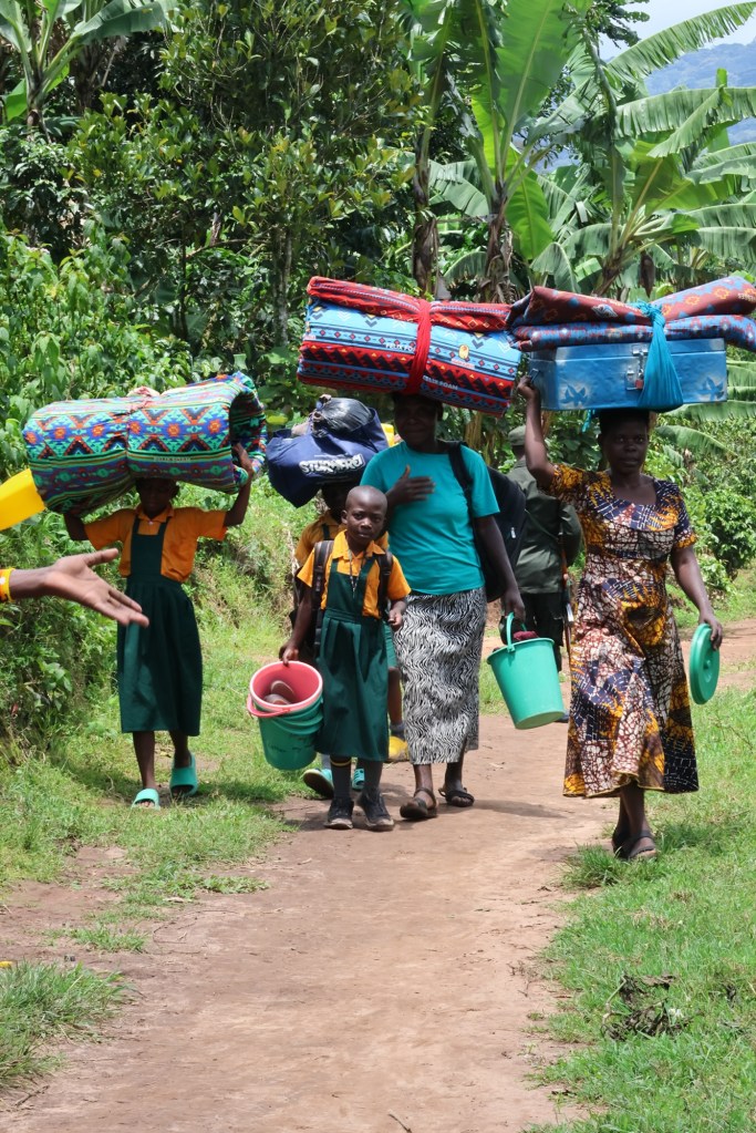 We met several groups of kids returning from boarding school for Easter. They only look 5 or so. They are carrying their mattress, a small trunk and other stuff. Amazing to see.