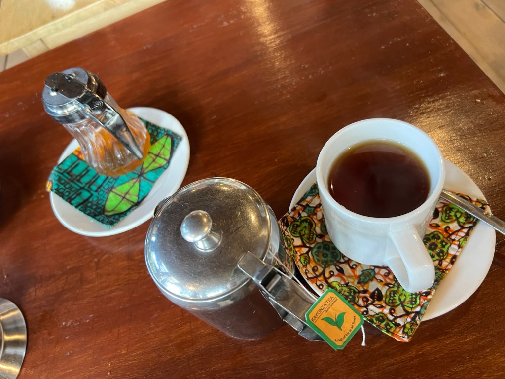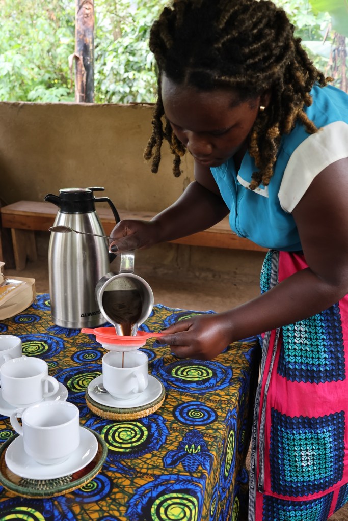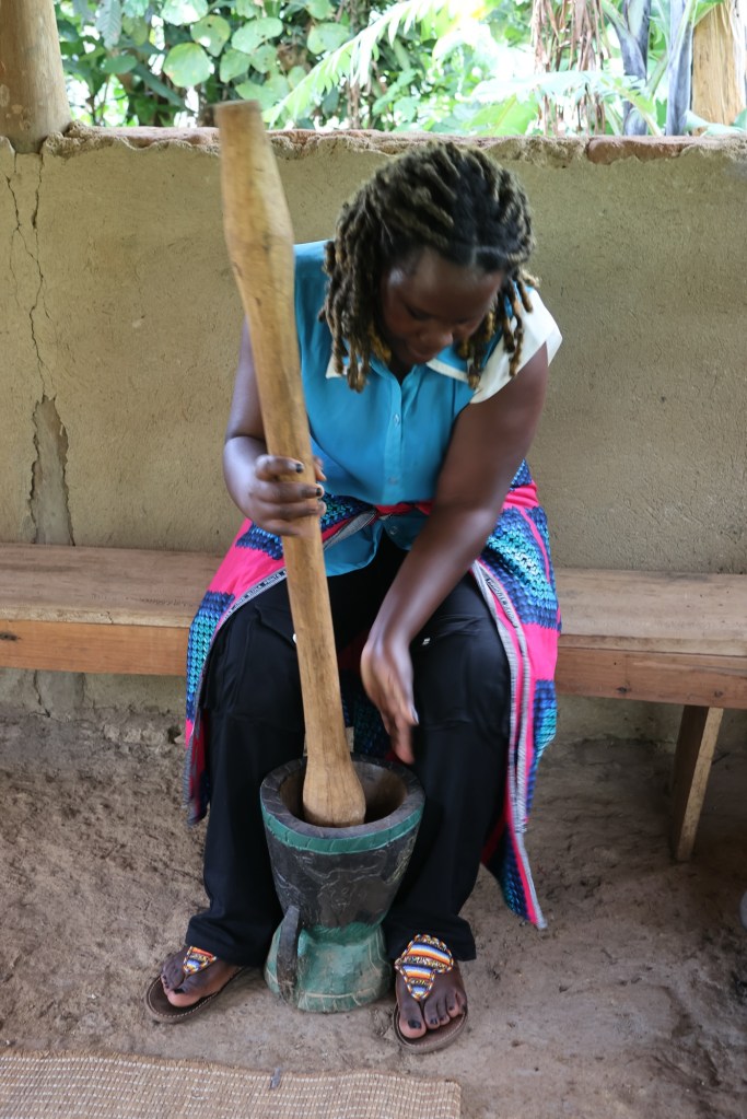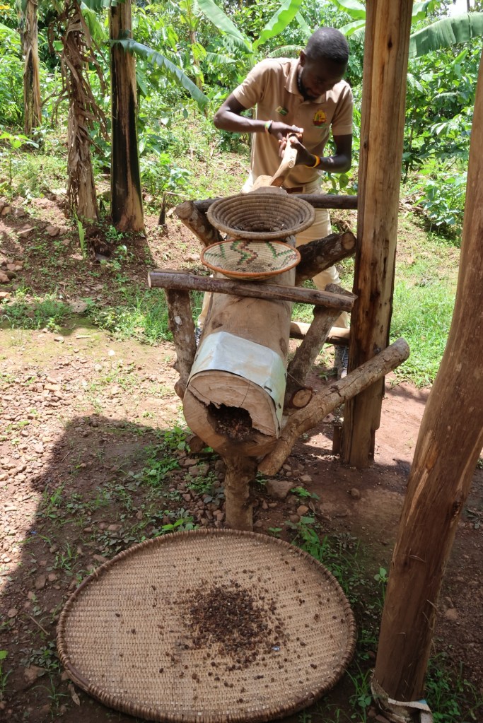 Then our last stop at Eliza’s cafe to watch the making of coffee from dried bean to a cup to taste. Ugandan coffee style.
