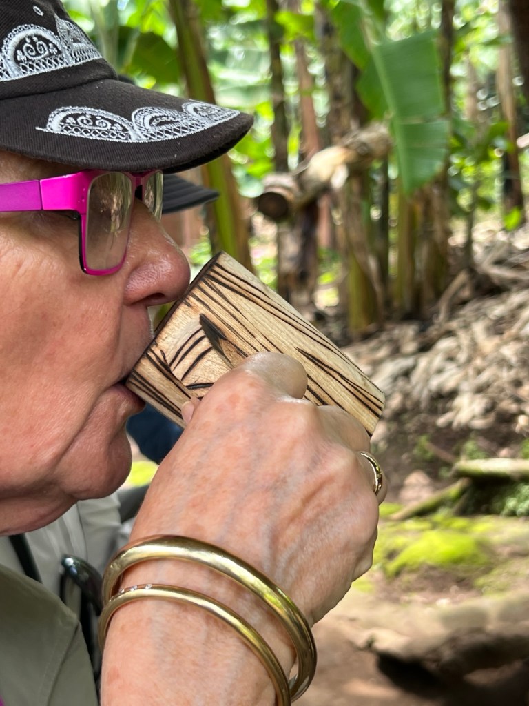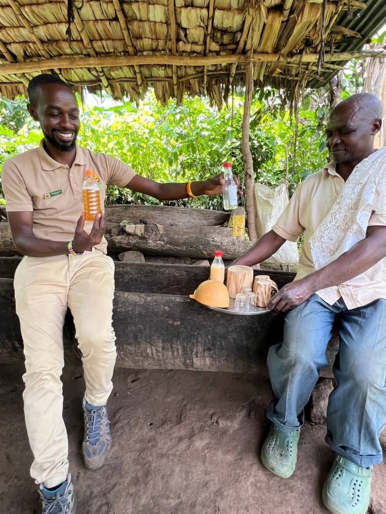 Our next stop was to visit ‘Sandy the man who makes magic happen.’ Sandy makes banana gin with a traditional process passed down through the generations. The final product is 42% alcohol.