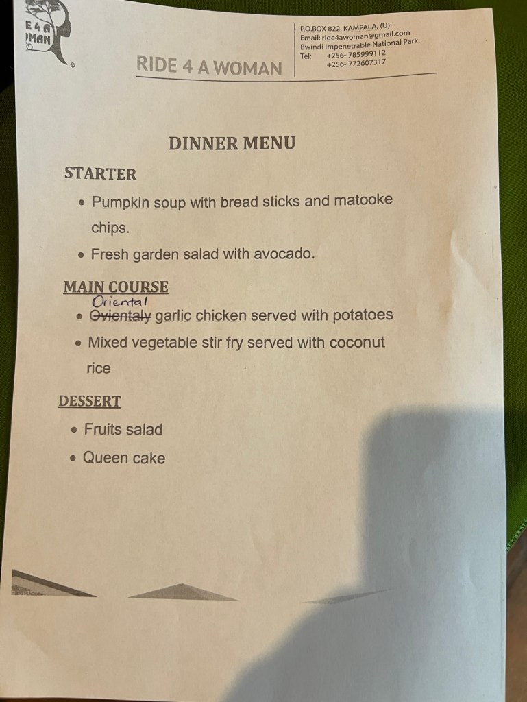 Ride 4 a Woman rented the building as it was a bar that created noise issues for guests. They have now allowed Annett (one of the ladies who used to sell chips on the main road) to run her chips here at night and the Luwombo (banana leaves cooking is traditional to central Uganda) during the day. This restaurant is well frequented by hospital staff who work just across the road.