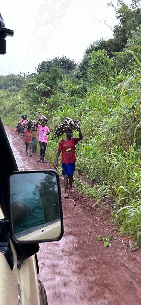 Driving past beautiful crater lakes on a slimy mud track required the employment of 4wd. It was a challenge for the poor bodaboda rider with four people on board trying to maintain a straight line and upright in the boggy conditions.