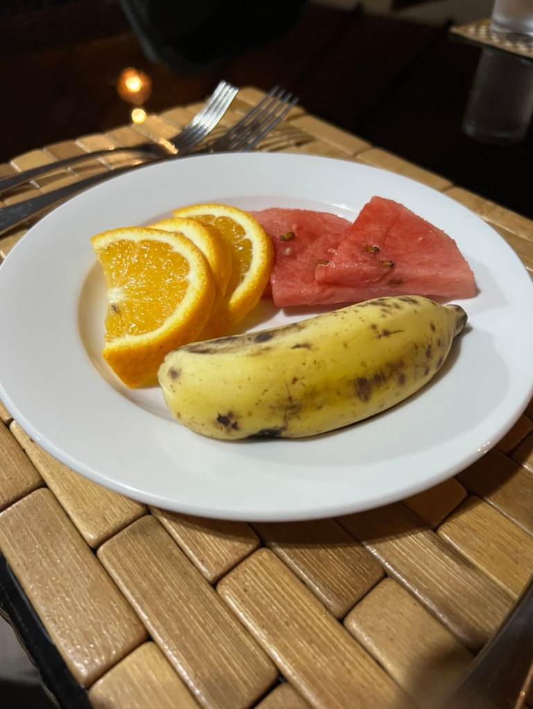 We were welcomed by Nicholas to be briefed and welcome drink today- sensational Watermelon, beetroot, passion fruit and pineapple juice. Ordered dinner. The lodge has 24 hour power unless on generator (due to power outage – which we had in the rain) then it goes off at midnight.