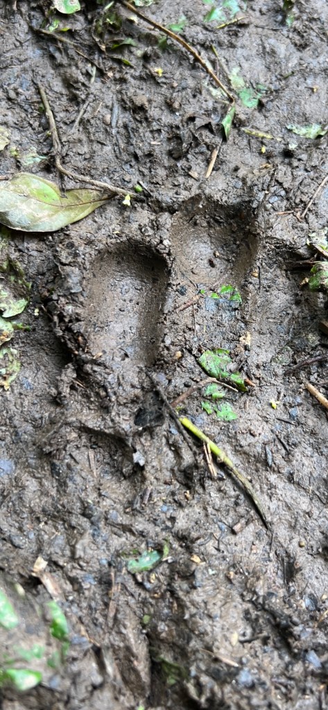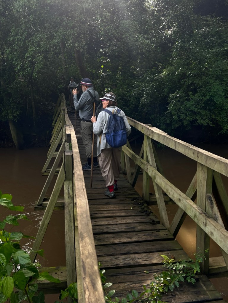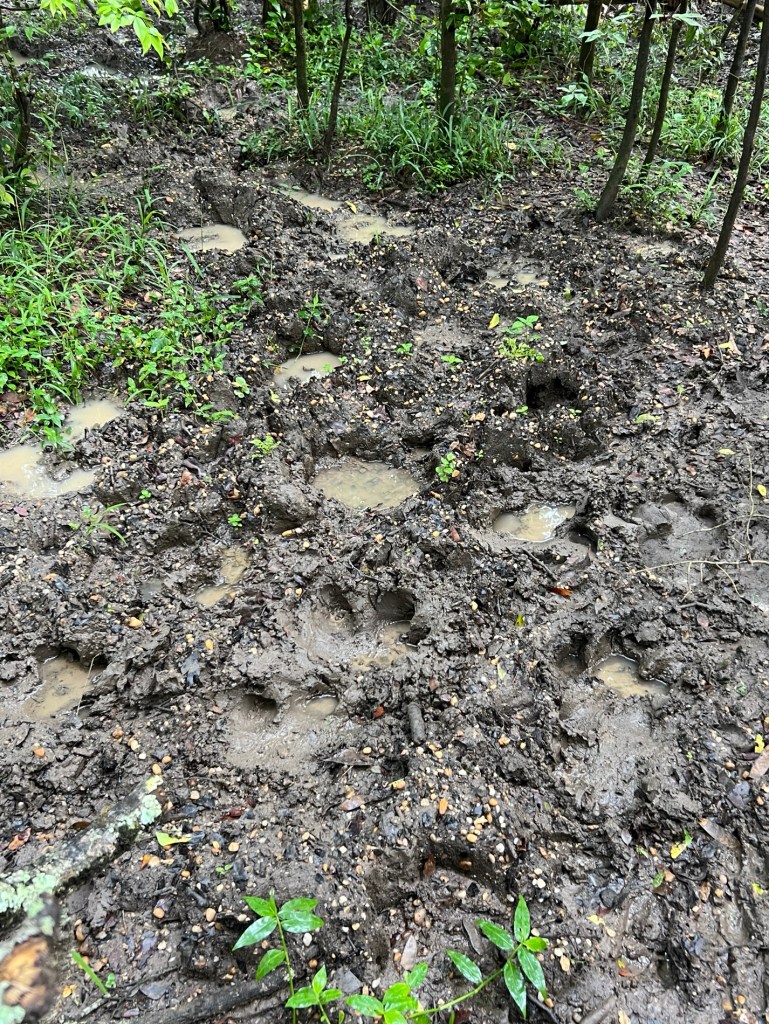 A very muddy and at times slippery trek. We can’t believe the size of both the elephant and hippo prints in the same mud tracks we are walking on. We also struggle to picture the hippos and elephants getting up and down the steep paths down into and out of the gorge.