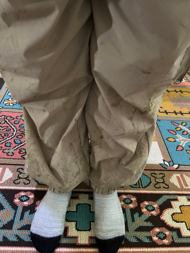Back to the lodge for a well needed shower and get our filthy pants and shoes off. Then to lunch and pay our bill.