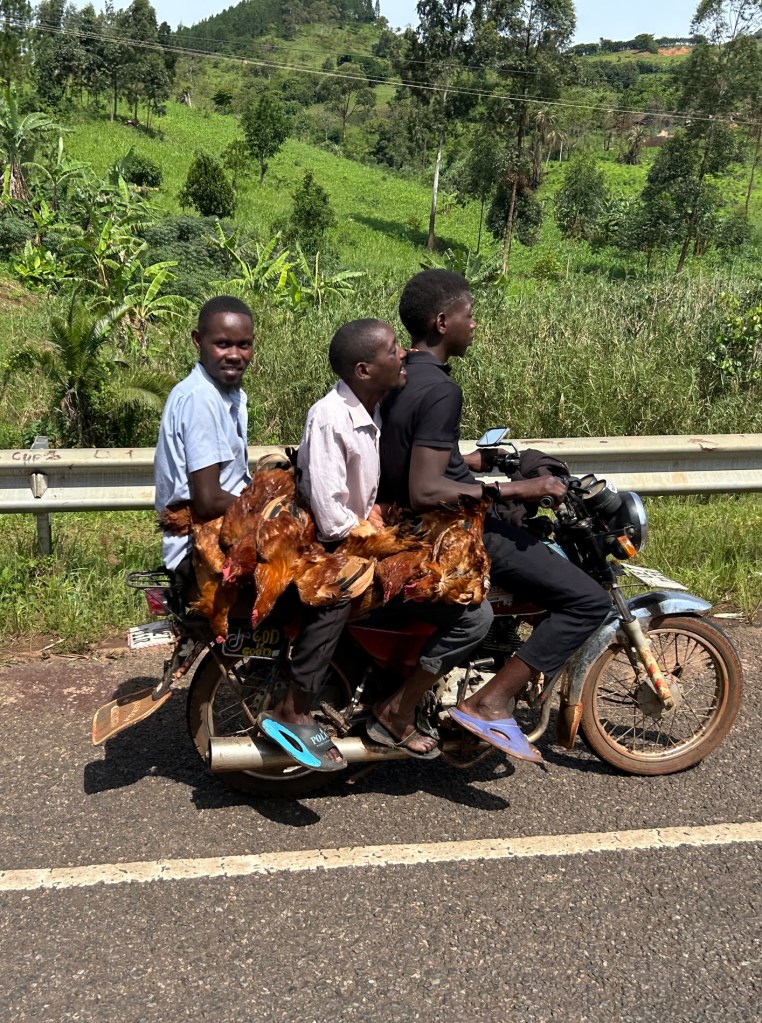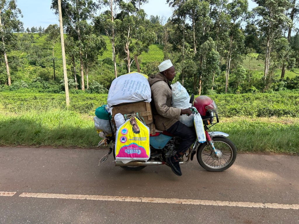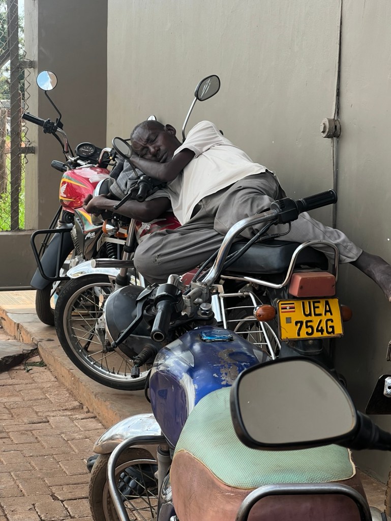 Lots of kids on the back of bodaboda’s coming home from boarding school as it is end of term. They all have a trunk, a rolled up mattress and a bucket (for showers and washing).