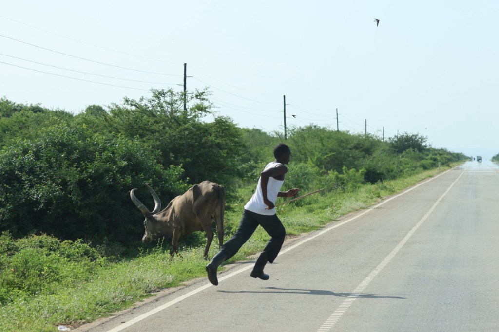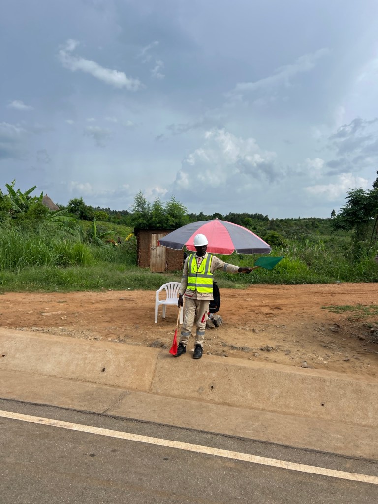 The road is great, really sharp speedhumps to slow us down in towns/villages. Then there are traffic controllers with a green and red flag waving us to slow down. They have a little stool and beach umbrella to sit under. Also fully covered and a hard hat too.