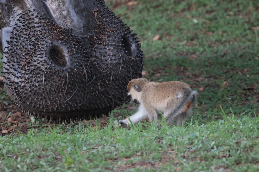 Wilson met us there. The views where we had our sundowners is across the River Nile. This is part of the Nile Delta. We are on the Victoria Nile as this bit joins to Lake Victoria. We have Vervet monkeys frolicking and a bit of a breeze. Maybe a swim is too hard.