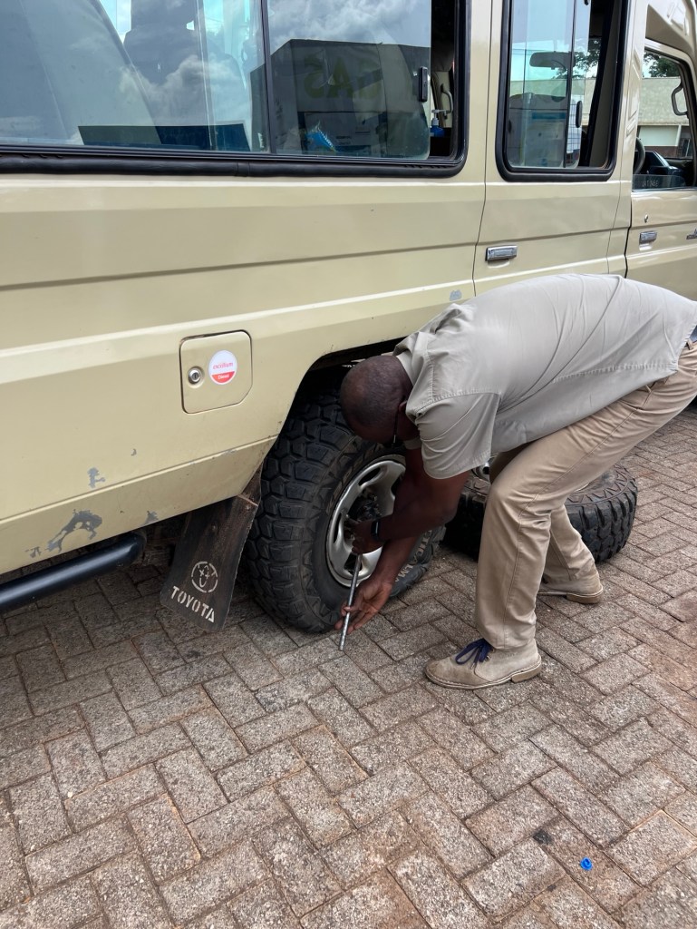 Just before 5 we left the main road back onto a well made dirt road. Signs to a bunch of lodges on the corner so we were getting ever closer. We left this am just after 9am. So a long day in the truck.