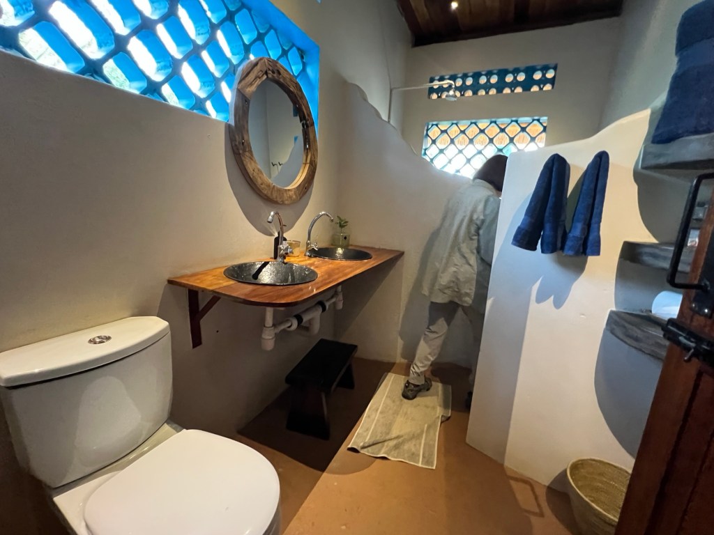 Our rooms have canvas windows. Upstairs and downstairs, USB charging is in the safe with a padlock. No charging points in the rooms. But a very cool room way to experience the NP.
