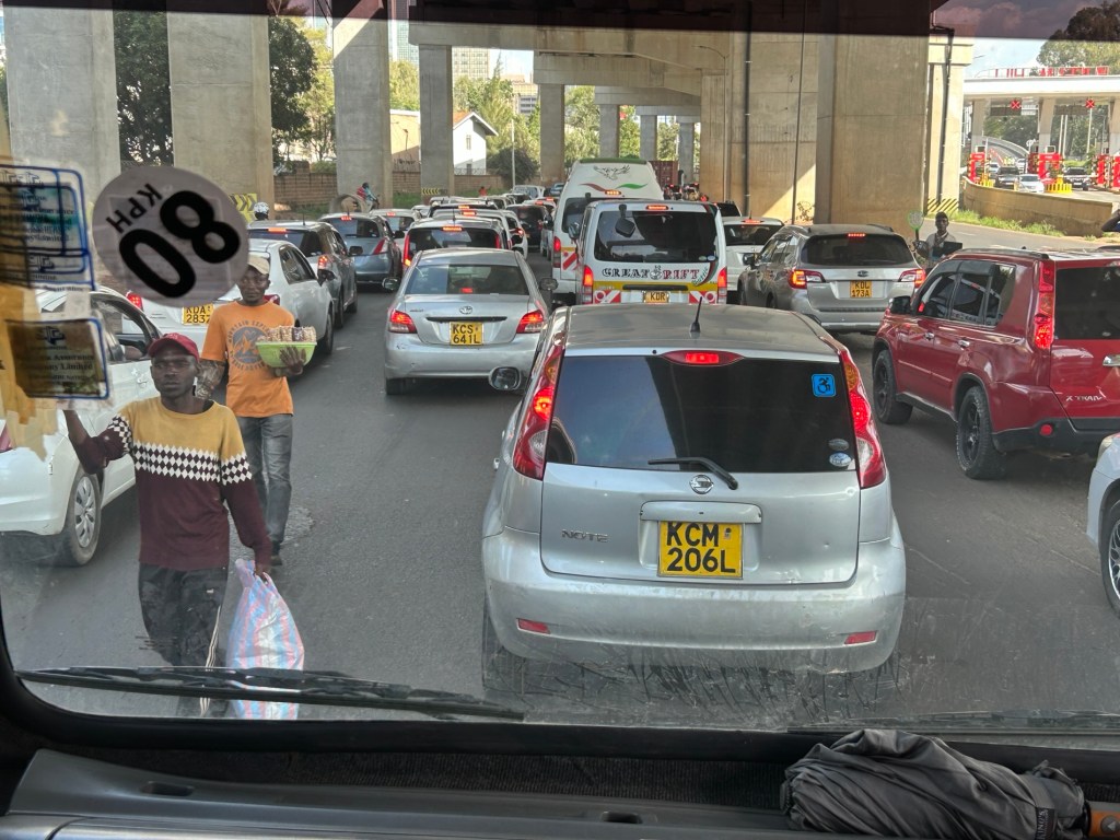 The Nairobi traffic is bumper to bumper and chaotic.