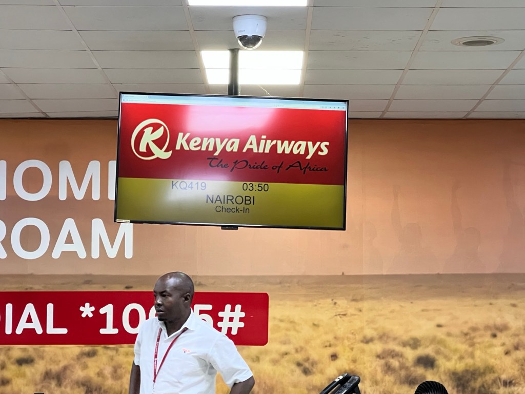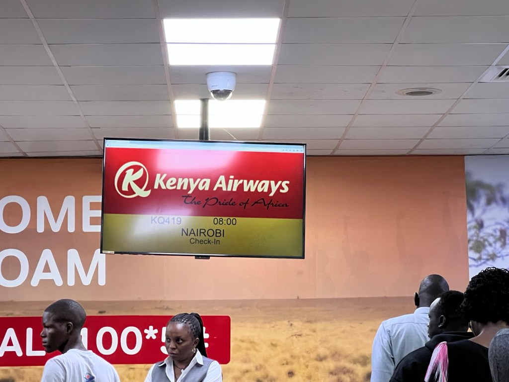 The only flight showing our departure time is Rwanda Air, so we assumed a code share and approached the Rwanda Air desk, only to be told we should wait for Kenya Airlines to open their check in. No sign of anyone at the desks they directed us to so we waited in hope. There was another bloke who found a chair and was waiting so we had some hope.